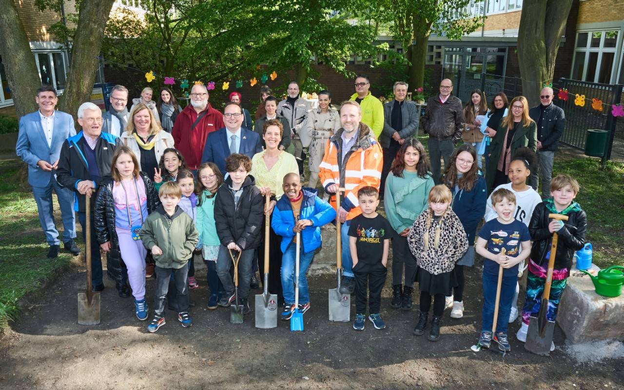 Die Schüler der Münsterschule in der Innenstadt bei uns in Essen können bald auch draußen lernen. Auf einem Stück Wiese auf dem Schulgelände entsteht ein „Grünes Klassenzimmer“ unter freiem Himmel. Am Dienstag (2. Mai) war der erste Spatenstich. Es wird unter anderem Sitzgruppen für zwei Klassen geben, Hochbeete, einen Barfußpfad und eine Forscher-Station. Im Sommer wird es im Schulgebäude oft sehr heiß, dann soll das Open Air-Klassenzimmer eine Alternative sein. Schon in diesem Sommer sollen echte Insekten und Pflanzen den neuen Lernort unter freiem Himmel bevölkern. Das Projekt wird von der Essener Kinderstiftung finanziert.