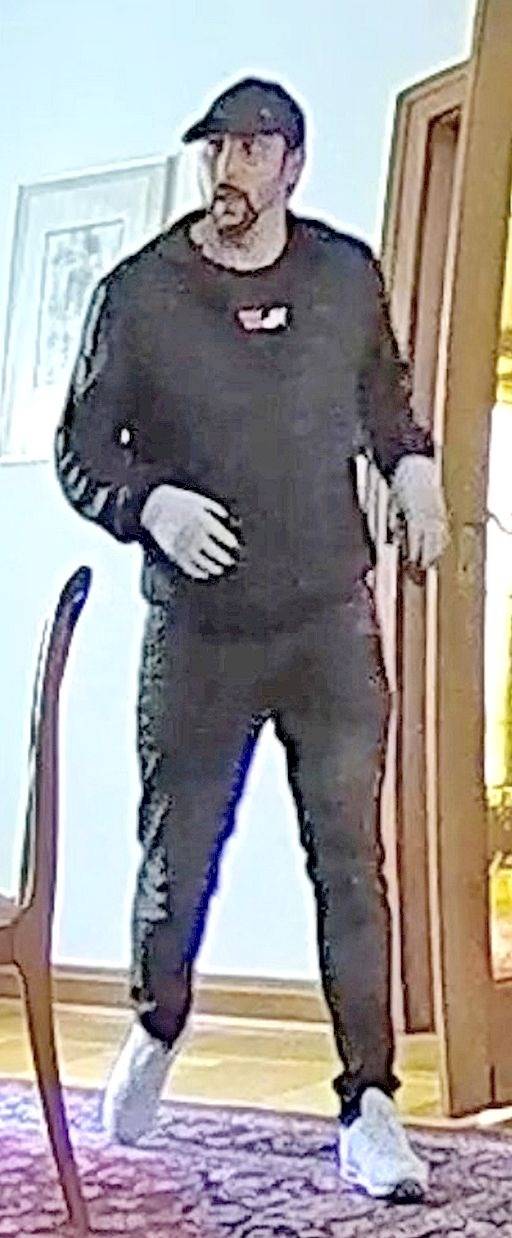 - schwarze Hose, schwarze Jacke, weiße Turnschuhe, Basecap, Handschuhe