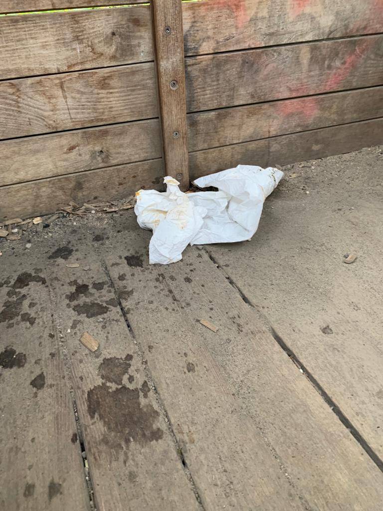 Wer größere Dreck-Ecken in einem öffentlichen Park sieht, kann die Hotline der Stadt anrufen 0201-8888888. Die schicken auch jemanden raus. Das kann aber ein paar Tage dauern, weil die sehr viele Anrufe bekommen.