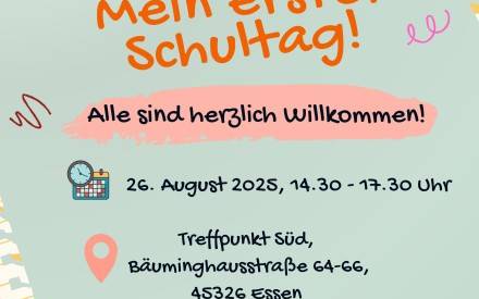 Für viele Kinder in Essen steht ein großer Tag bevor: die Einschulung. Darauf werden die angehenden Grundschülerinnen und Grundschüler am Dienstagnachmittag (26. August) in Essen vorbereitet – bei der Kinderrallye „Mein erster Schultag“. Dabei geht es quer durch den Essener Norden zu verschiedenen Stationen. Start ist um 14.30 Uhr am Treffpunkt Süd an der Bäuminghausstraße 64–66. Die komplette Aktion ist kostenlos.