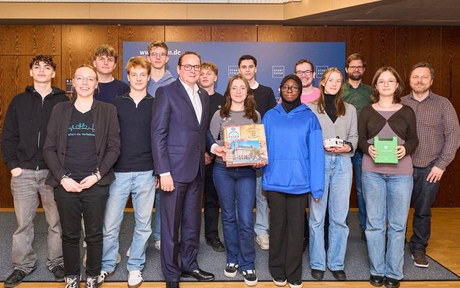 Schüler verschiedener Gymnasien in Essen haben Oberbürgermeister Thomas Kufen die Ergebnisse ihres Schulprojekts "Essen auf Rädern" präsentiert. Die Schüler vom Maria-Wächtler-Gymnasium, Helmholtz Gymnasium, Carl-Humann-Gymnasium, Leibniz-Gymnasium, Goetheschule und Mariengymnasium Essen-Werden haben im Rahmen des Projekts "Verkehrswende in Essen" die Fahrrad-Infrastruktur in der Stadt analysiert und dabei Umweltdaten gesammelt. Ziel war es, Maßnahmen zu entwickeln, die vor allem die Alltagswege der Jugendlichen sicherer und umweltfreundlicher machen. Oberbürgermeister Thomas Kufen lobte das Engagement der Schüler: