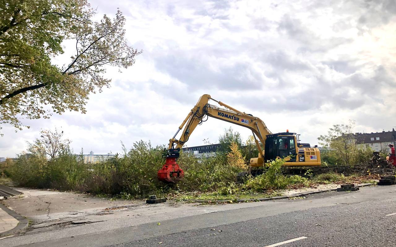Das ehemalige REAL-Gelände in Essen-Altendorf gammelt seit etwa sechs Jahren vor sich hin. Überall Gestrüpp und Sperrmüll, der Bauzaun ist an vielen Stellen kaputt. Jetzt tut sich aber was. Ein Bagger reißt das ganze Gestrüpp raus und schiebt den Sperrmüll zusammen. Eine Riesen-Baustelle wird hier eingerichtet. 550 neue Wohnungen sollen gebaut werden. Investor ist die Thelen-Gruppe, also der Konzern, der auch auf der anderen Seite des Krupp-Parks einen komplett neuen Stadtteil baut, das legendäre "Essen 51".