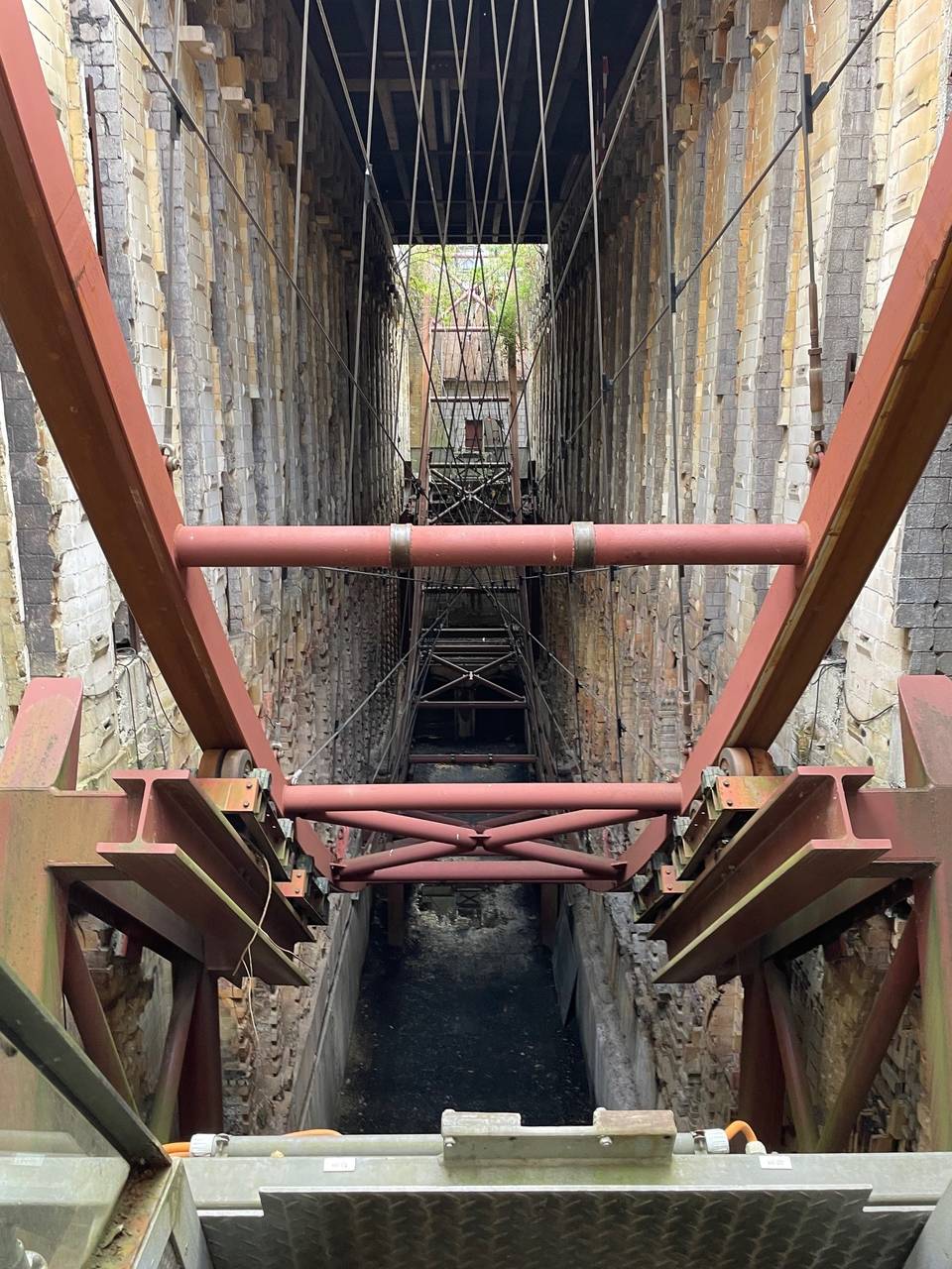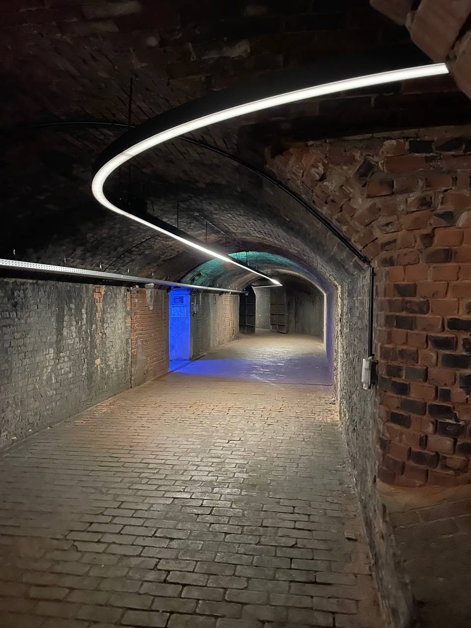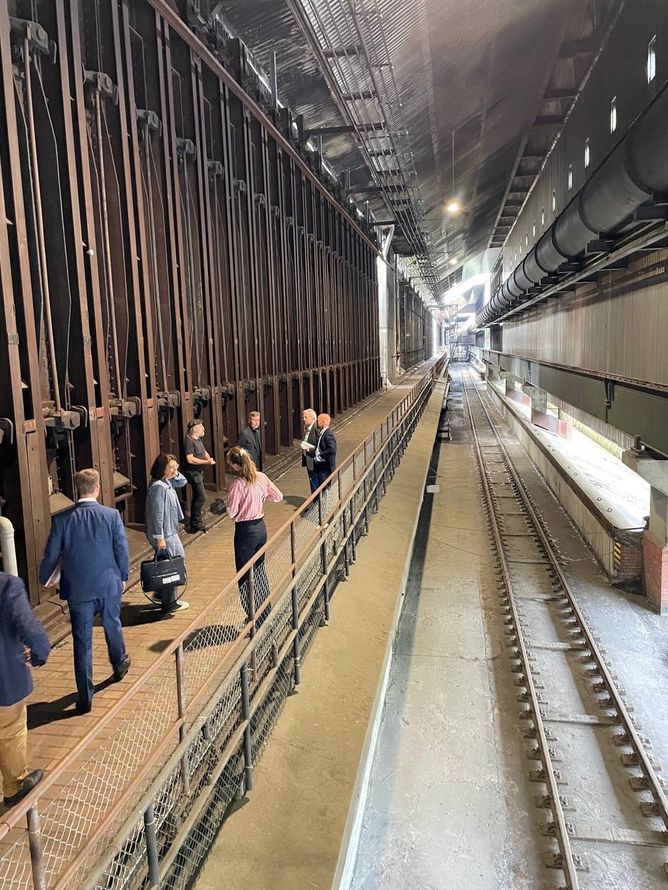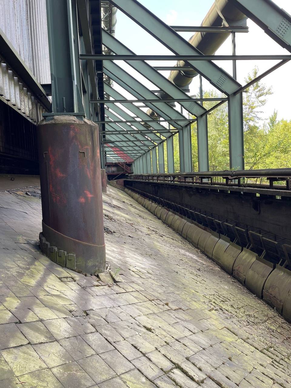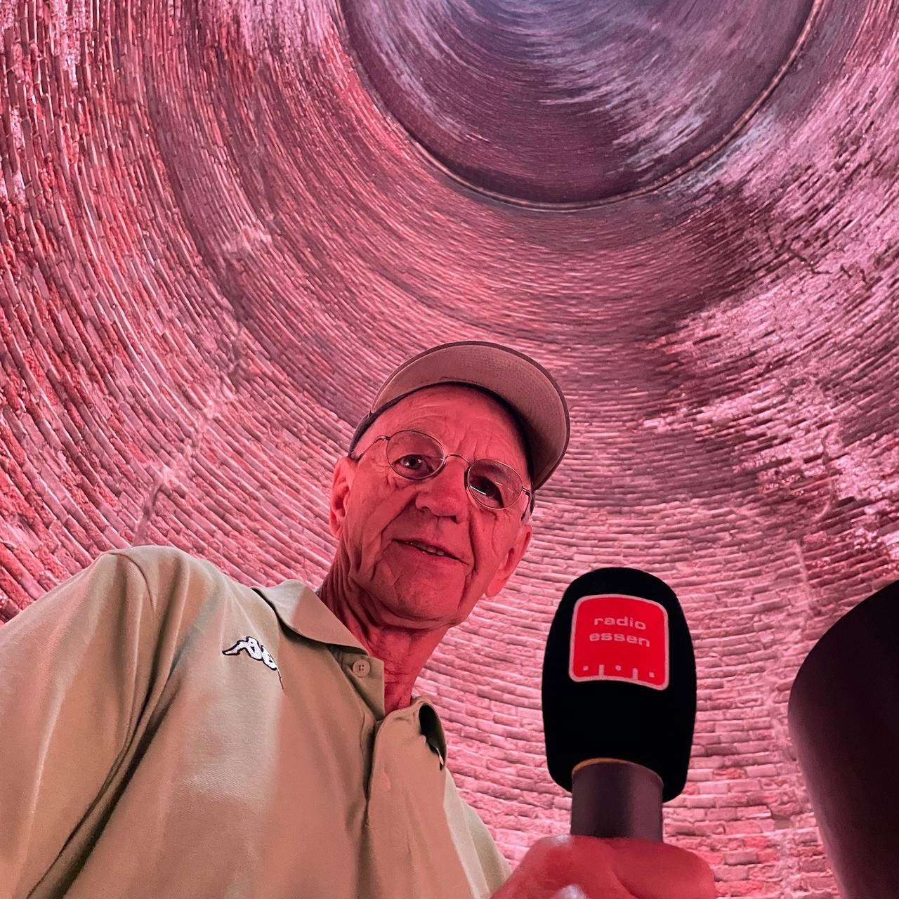 Albert Mühlenweg nimmt uns mit in seine Kokerei Zollverein. 1964 hat er hier mit 14 Jahren seine Ausbildung hier begonnen. Bis zur Schließung 30 Jahre später hat er hier gearbeitet. Jetzt erzählt er als Gästeführer von seinem Job. Radio Essen-Stadtreporter Timm Schröder zeigt er eine der neuen Stationen des Denkmalpfads. Für die beiden geht es praktisch in den Keller. Hier wurden die Gase der Kokerei in die großen Kamine geleitet. Früher hätte man diesen Bereich nicht betreten können. Er war viel zu heiß hier. Jetzt zeigen Lichtinstallationen der Weg der Gase. Auch für Mühlenweg ist es eine Premiere.