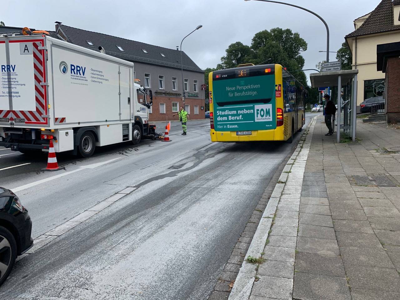 Am Montagvormittag sorgt ein Betonmischer in Essen für viel Stau. Er hatte ein Leck und viel flüssiger Beton ist ausgelaufen. Die Aufräumarbeiten laufen noch bis in den Mittag.