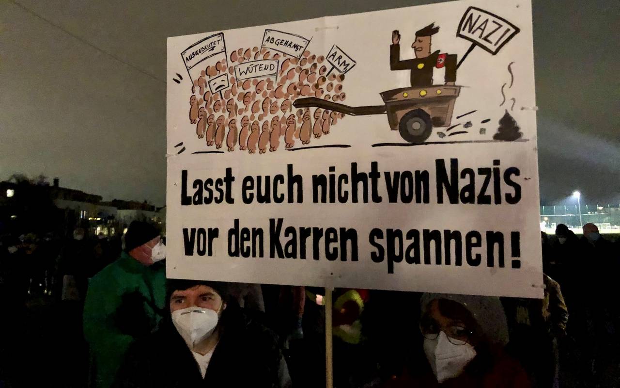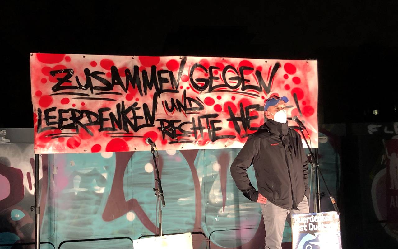 Seit einigen Wochen gehen bei uns in Essen Corona-Leugner montags auf die Straße und demonstrieren gegen die Corona-Maßnahmen. Der Ruf nach Gegendemos wieder gleichzeitig immer lauter. Jetzt gab es die erste: Das Bündnis "Essen stellt sich quer" rief heute (24. Januar) zur Demo gegen Corona-Leugner auf. Die Aktion startete um 17:30 Uhr auf dem Parkplatz 2 der Messe in Rüttenscheid - direkt neben sollte eigentlich die Montagsdemo der Corona-Leugner stattfinden. Die wurde aber nach Stoppenberg verlegt.