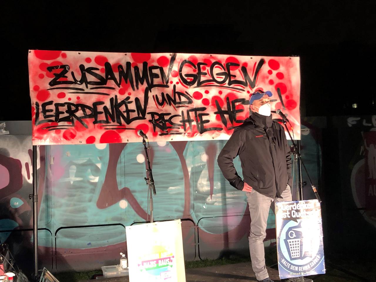 Als Redner bei der Gegendemo in Essen dabei war Marion Greve, die Superintendantin der Evangelischen Kirche hier in Essen, und der Chefvirologe der Uniklinik in Holsterhausen, Prof. Ulrich Dittmer. Insgesamt waren laut der Polizei rund 500 Teilnehmerinnen und Teilnehmern bei der Demo. Auf die Kundgebung der Corona-Leugner traf die Demo nicht, sie fand kurzfristig in Stoppenberg statt.