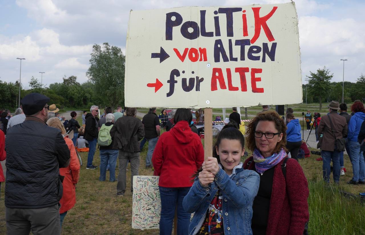 - Bei der Demo herrscht eine friedliche Stimmung, einige haben sich sogar Camping-Stühle mitgebracht zum Parkplatz P10. Die Redner fordern, den einzelnen Menschen mehr in den Blick zu nehmen, der von den Einschränkungen betroffen ist. Daher sollen die Einschränkung überprüft werden, so die Forderung.