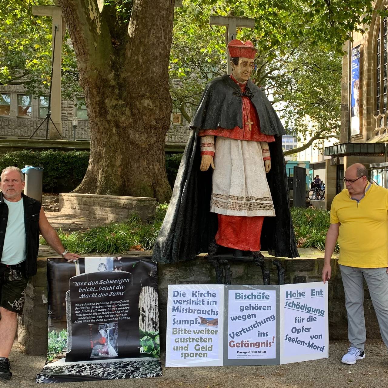 Die Initiative Maria 2.0, die sich für die Erneuerung der katholischen Kirche einsetzt, hat sich auch geäußert: Sie ist dafür, das Denkmal abzubauen und auch den Kardinal-Hengsbach-Platz in der Innenstadt umzubenennen. Der Generalvikar des Bistums Essen, Klaus Pfeffer, sagte im Interview bei Radio Essen, dass man manchmal solche Persönlichkeiten von ihren zu hohen Sockeln herunterholen müsse.