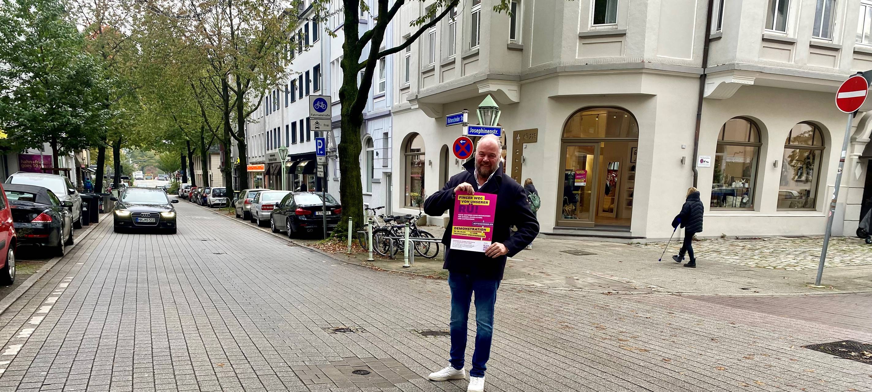 In Essen sollen ab Mitte nächsten Jahres deutlich weniger Autos über die Rüttenscheider Straße fahren. Dazu soll sie für den Durchgangsverkehr von Süden nach Norden und umgekehrt gesperrt werden. Am Beginn der Rü aus Richtung Innenstadt und am Ende in Bredeney sollen Autofahrer mit Schildern zum Abbiegen aufgefordert werden. Von den Nebenstraßen aus können Autofahrer aber weiterhin auf die Rü einbiegen. Teilweise wird die Straße auch eine Einbahnstraße. Das alles soll dazu führen, dass weniger Autofahrer unterwegs sind. Den rund 500 Geschäftsleuten und Gastronomen entlang der Rü macht das große Sorgen. Ralph Cremer von der Boutique Edelguth lässt deshalb gerade einen Anwalt prüfen, ob gegen den Ratsbeschluss eine Klage möglich ist. Das erklärt der Geschäftsmann im Interview mit Radio Essen-Moderatorin Anna Bartl.