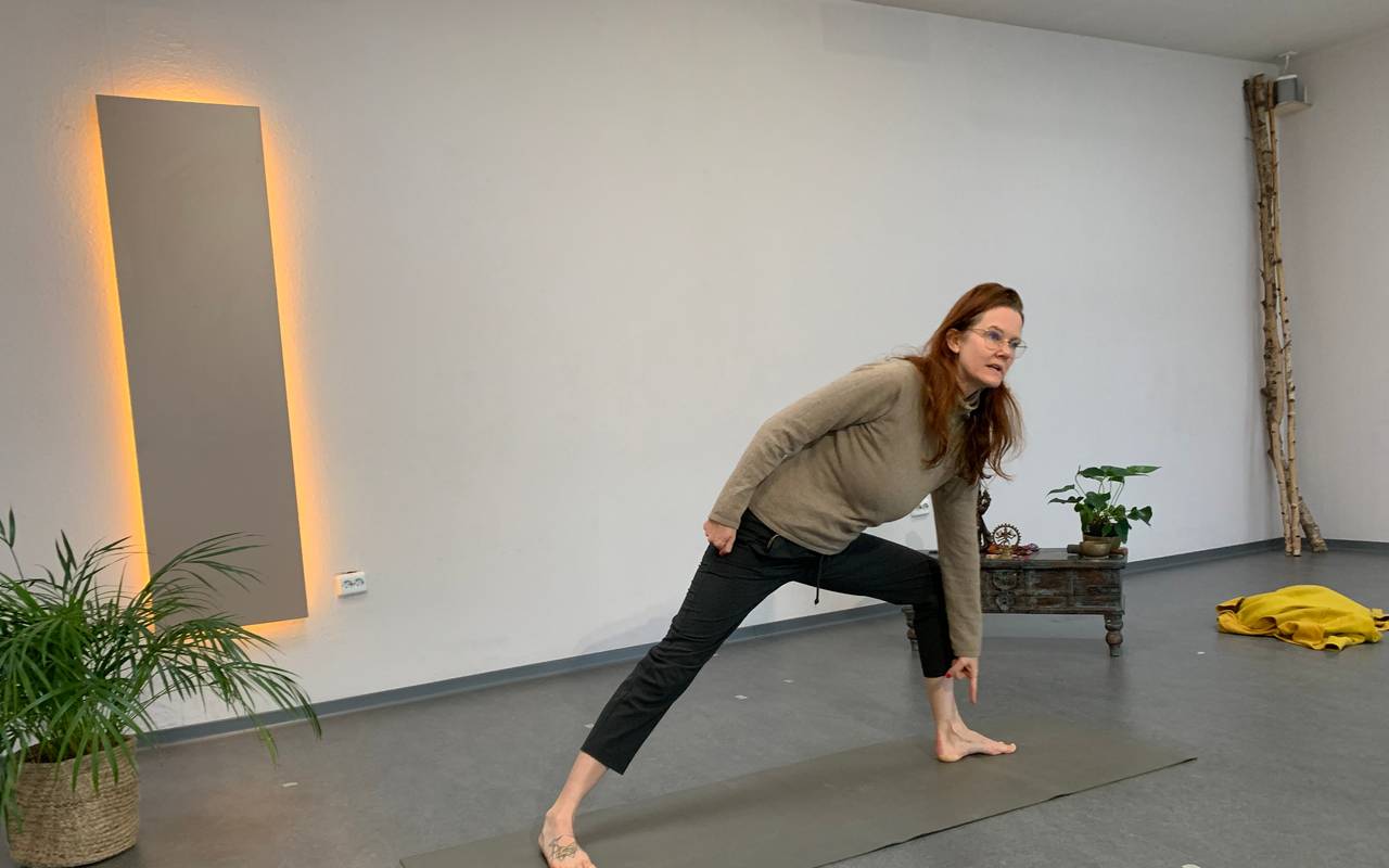 Julia Schlenkert macht täglich mehrere Yoga-Online-Kurse, aus ihrem Studio im Hinterhof am Rüttenscheider Stern. Julia verdient mit den Online-Kursen gerade mal genug um Miete, Heizung und Versicherungen weiter zu bezahlen. Staatshilfen bekommt sie keine, weil sie immer noch so viel einnimmt, dass ihre Firma nicht pleite geht. Sie kann sich für ihre Arbeit kein Gehalt auszahlen und lebt im Lockdown nur von ihren Ersparnissen.