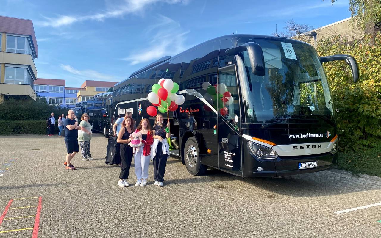 Die Schülerinnen und Schüler der Sekundarschule am Stoppenberg können endlich ihre lang geplante Reise nach Rom antreten. Darauf haben viele von ihnen lange gewartet. Die Reise musste wegen der Corona-Pandemie zwei Mal verschoben werden. Am Samstag (29.10.) ist es soweit. Rund 1000 Schülerinnen und Schüler steigen in die 22 Busse an der Schule und fahren los. Die Schülerinnen und Schüler werden am 5. November zurück kommen. Bei der Abfahrt waren am Samstag etwa 3000 Menschen vor der Schule. Eltern, Geschwister und freunde waren gekommen, um zu winken.