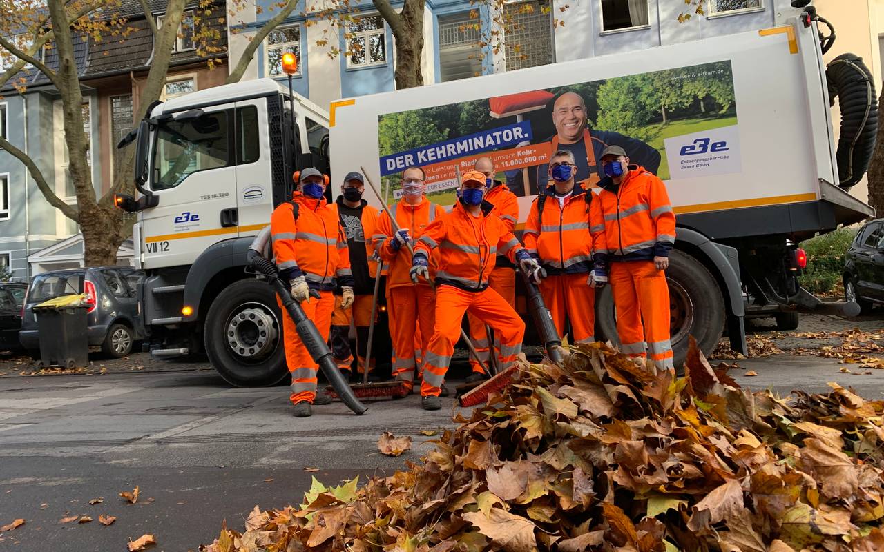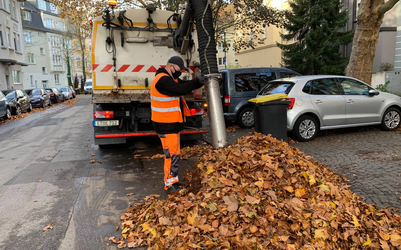 Fegen, Blasen, Saugen - der Herbst-Triathlon der Männer in orange. Sie machen seit Tagen das Herbstlaub weg. Vier bis fünf Tausend Tonnen Laub kommen in Essen jedes Jahr zusammen. Manche Blätter machen dabei mehr Arbeit.