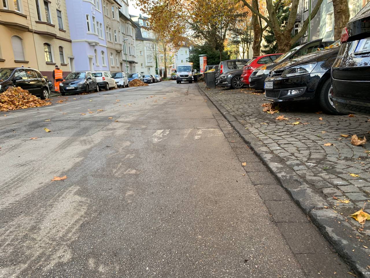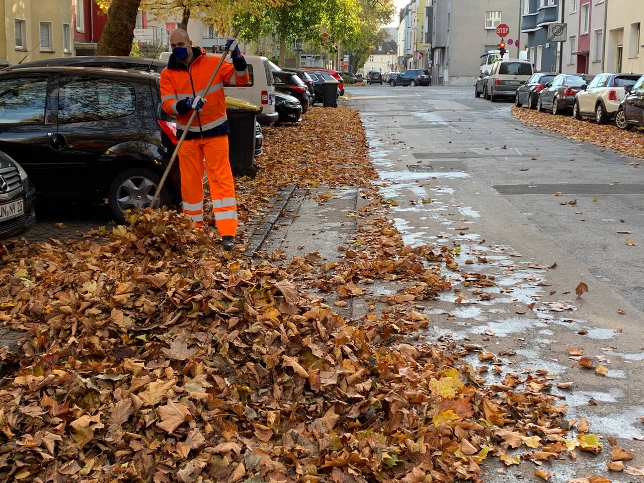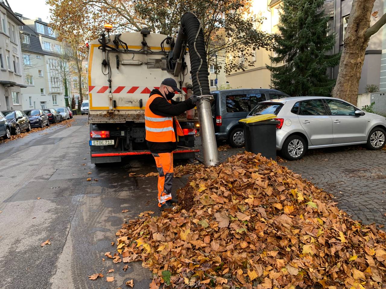 Wenn der Wagen voll ist, sieht die Straße dann wieder sauber aus. Das Laub wird im Müllheizkraftwerk in Karnap verbrannt. Kompostieren geht nicht, weil auch Reifengummi und Abfall im Laubsauger landen. Die Laubzeit dauert in Essen bis Mitte Dezember. Dann ist das Laub weg. Spätestens nach der ersten frostigen nacht kommen auch die letzten Blätter runter.