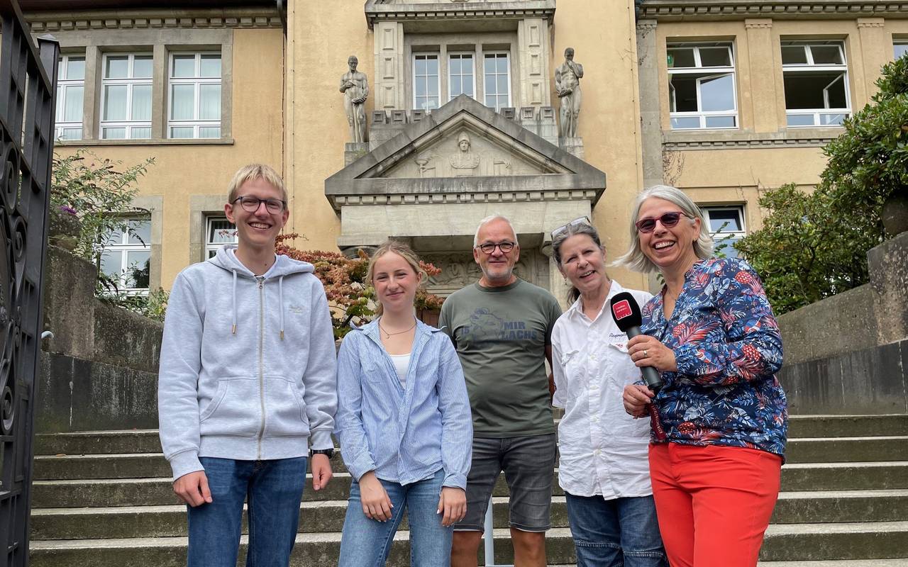 Der Turm ist auch der Lieblingsort von Jakub und Marlene. Die Beiden machen nächstes Jahr ihr Abitur an der Schule. Gastschülerinnen und Schülern zeigen sie von hier gerne ihre Heimat. Zu sehen ist nicht nur das frisch renovierte Rathaus von Bredeney, sondern auch die Skyline von Essen und am Horizont der Baldeneysee. Im Interview mit Radio Essen-Stadtreporter Timm Schröder geht es außerdem um einen nochmal glimpflich ausgegangenen Abi-Scherz und das Schulfest am Wochenende.