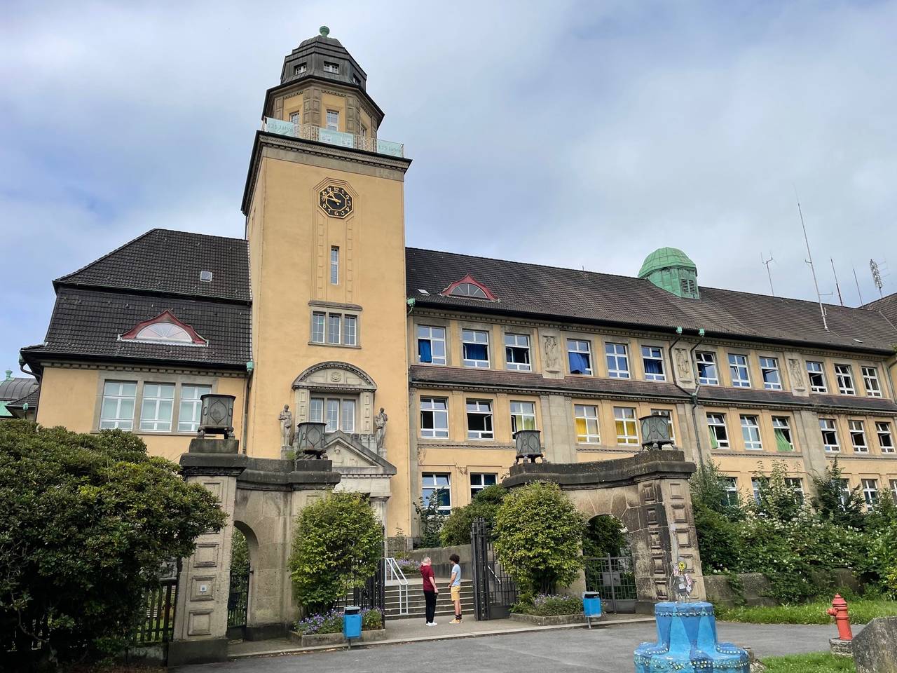 Radio Essen-Stadtreporter Timm Schröder trifft Nicola Haas. Sie war selber schon als Schülerin an dem Gymnasium in Bredeney. Jetzt ist sie die Schulleiterin. Durch das große hölzerne Tor geht es die massive Steintreppe hoch in das Foyer der Schule. Durch diesen Eingang durften früher nur die Schüler, die ihr Abitur in der Tasche hatten. Es liegt ein Hauch von Harry Potter in der Luft und das zeigt auch ein kurzer Abstecher in die historische Aula der Schule. Hier stehen noch Bühnenpodeste des letzten großen Konzerte.