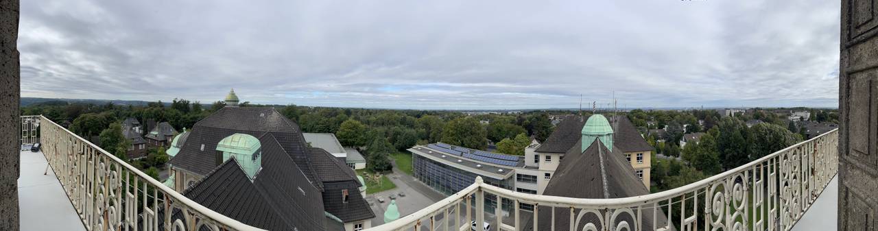 Am Samstag (31. August) feiert die Goetheschule in Bredeney ein Schulfest zum 125-jährigen Jubiläum. Es ist eine seltene Gelegenheit den Turm der Schule zu besichtigen. Wir waren vorher schon oben und haben die Aussicht ausgecheckt.