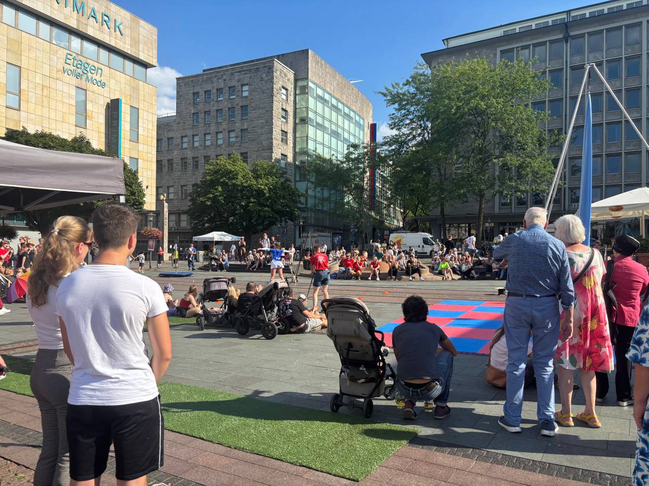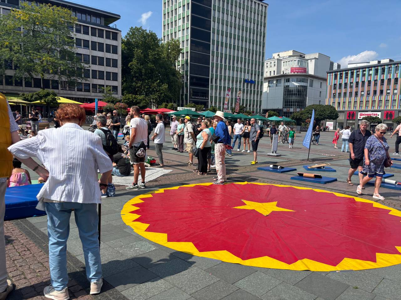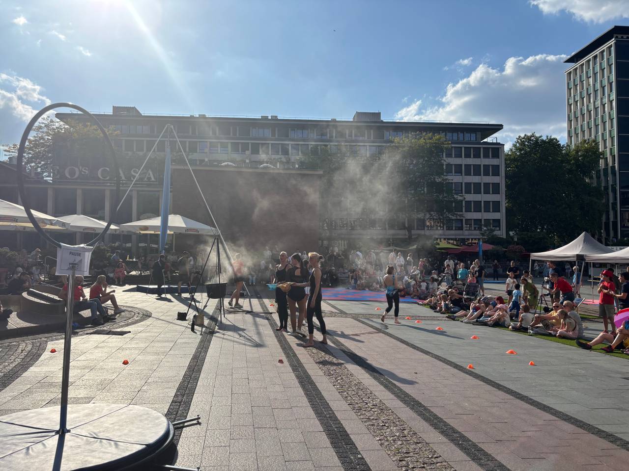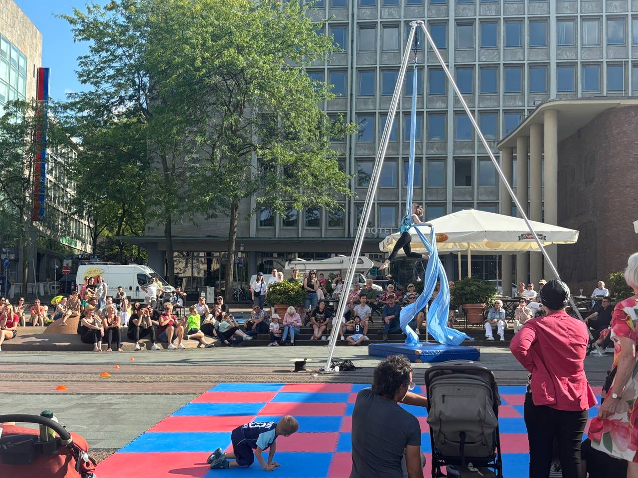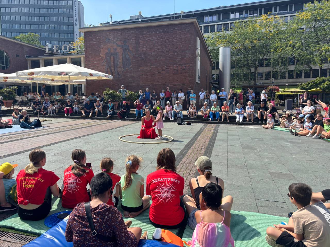 Am Kreativ-Spot auf dem Kennedyplatz wird es besonders interaktiv: Hier können Groß und Klein selbst ausprobieren, was sie können – von Seiltanz über Hula-Hoop bis hin zu Akrobatik. Auch Workshops ohne Anmeldung gehören zum Programm.