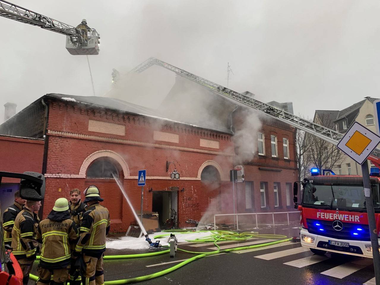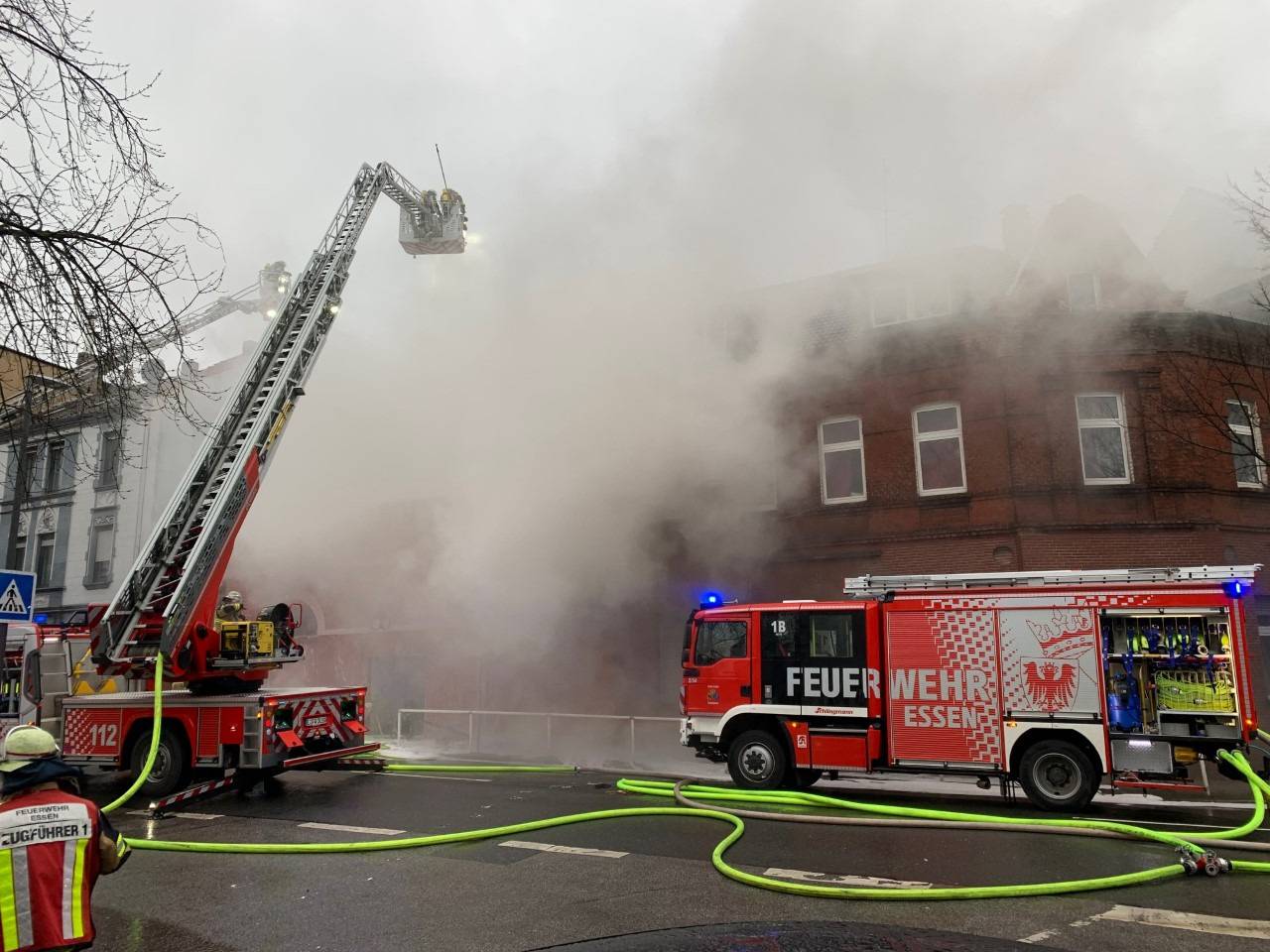 In Essen hat in der Straße Am Zehnthof ein ehemaliges Ladenlokal gebrannt. Der Brand ist am Mittag im Dachstuhl ausgebrochen. Die Feuerwehr musste zuerst einmal durch eine dichte Rauchwolke zum Brandort durchdringen. Die Feuerwehrleute mussten das Dach zuerst mit Kettensägen öffnen, um überhaupt an den Brandherd zu kommen. Gleichzeitig sind weitere Feuerwehrleute von allen Seiten in das Gebäude gegangen, um die weiteren Brände zu löschen. Bis in die Abendstunden hat die Feuerwehr mithilfe der freiwilligen Feuerwehren aus Kray, Byfang und Mitte die letzten Glutnester gelöscht. Die Feuerwehr hat außerdem Unterstützung aus Dortmund bekommen. Die Feuerwehr Dortmund kam mit einem großen Teleskopmast, um von weiter oben die restlichen Glutnester im Dachstuhl zu löschen.