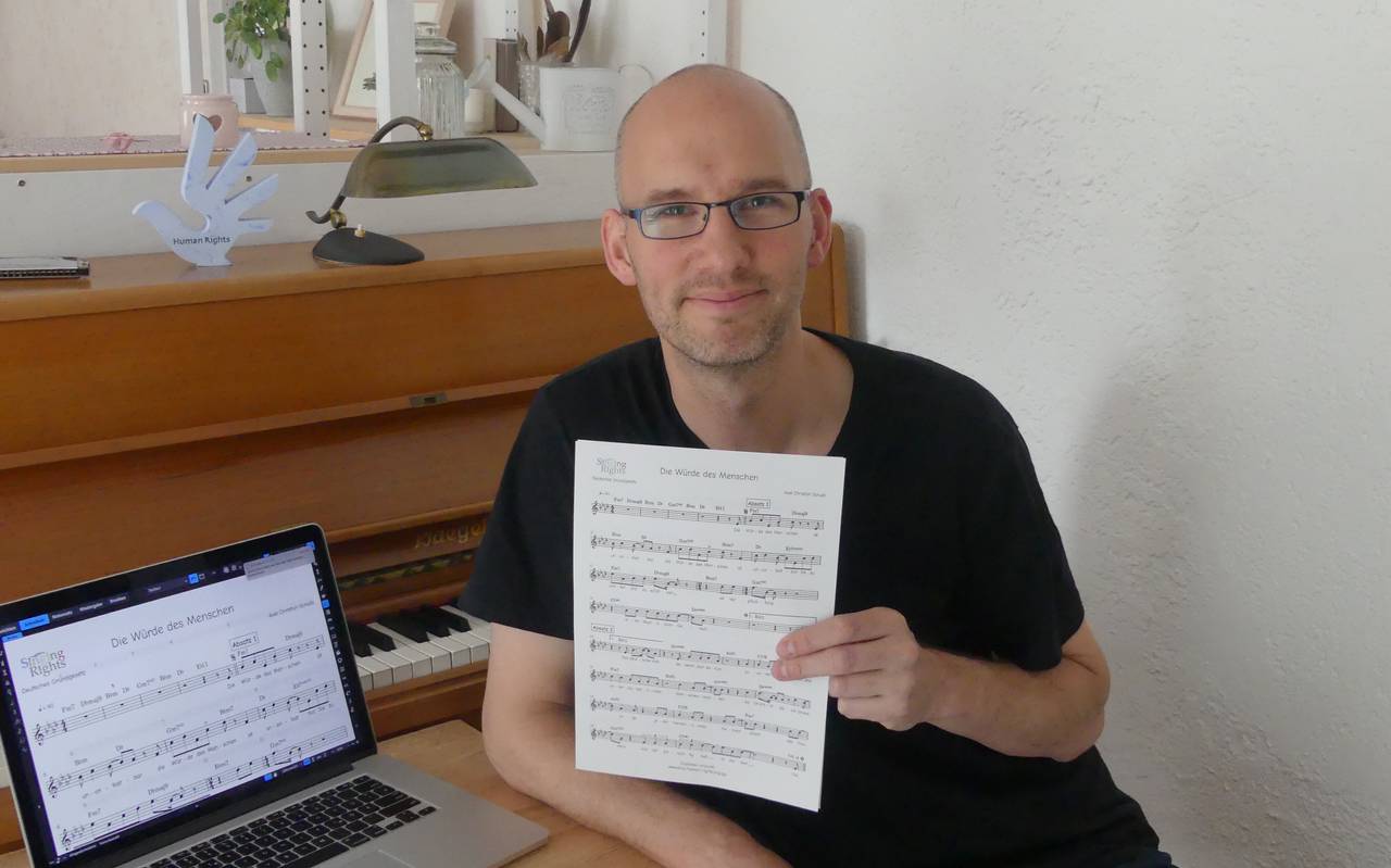 Eingängig und mitreißend singt der Folkwang-Absolvent und langjährige Essener Chorleiter Axel Christian Schullz den Wortlaut des ersten Artikels des Grundgesetzes. So werden trockene Rechtstexte lebendig.