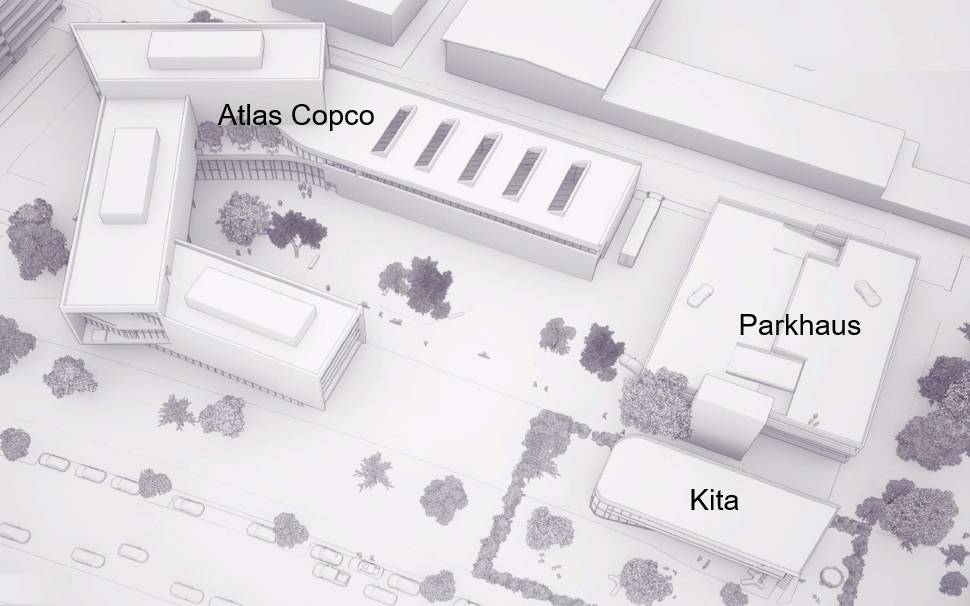 Der Hydraulik-Werkzeug-Hersteller Atlas Copco will seine Deutschlandzentrale von der Langemarckstraße an die A 40 verlegen. 360 Menschen werden in etwa 3 Jahren in ein modernes Bürohaus ziehen. Aber es gibt da nur 260 Büroarbeitsplätze. Die reichen völlig aus, sagt Achim Bettendorf von Atlas Copco. Einige haben Außentermine, einige arbeiten im Homeoffice, einige haben Urlaub, andere sind krank. "Mehr als 60 bis 70 % unserer Leute sind nie gleichzeitig im Haus", erklärt Bettendorf.