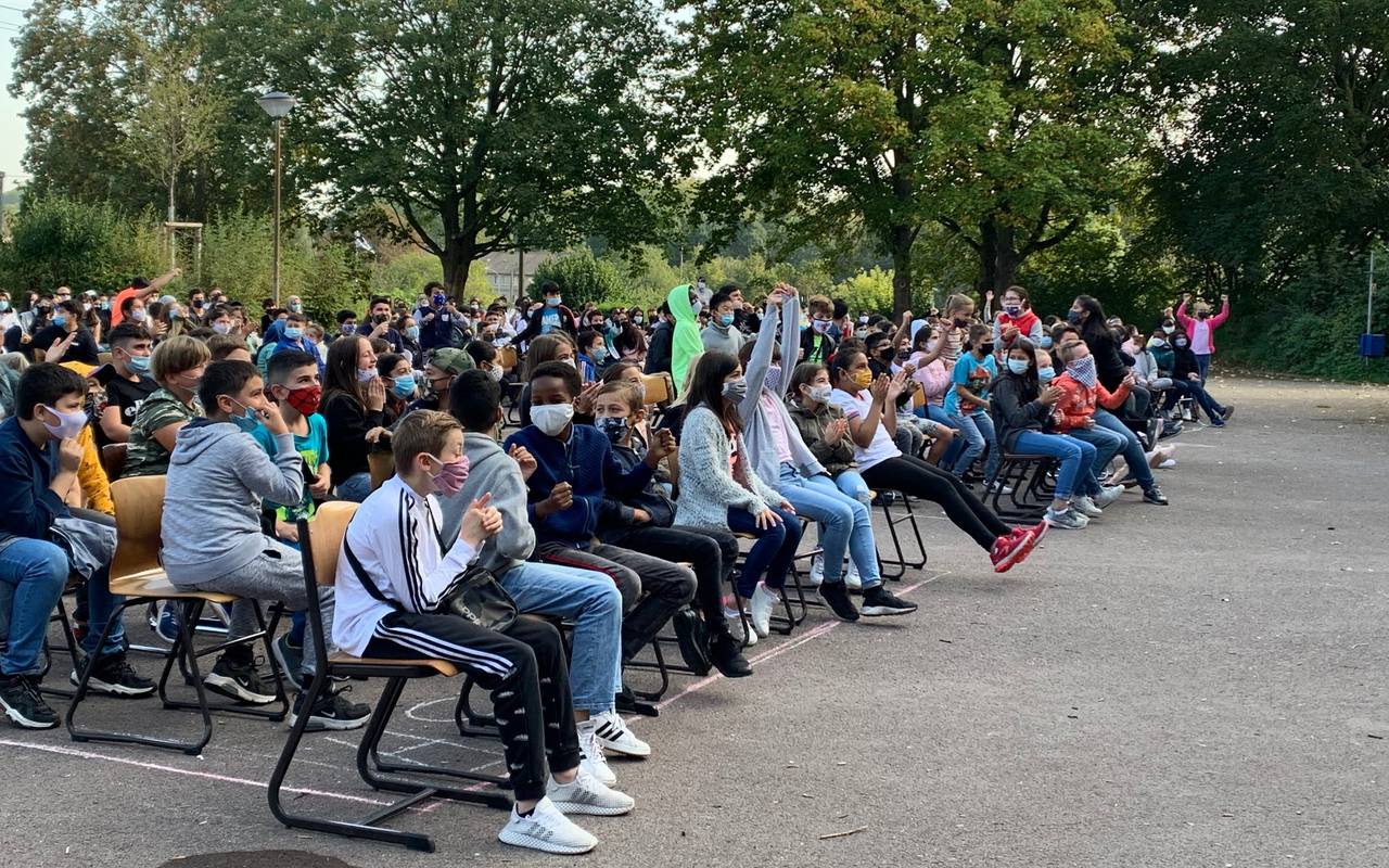 Das Gymnasium Nord-Ost in Altenessen ist eine der besten Schulen in ganz Deutschland. Am Mittwoch-Vormittag bekam das Gymnasium dafür einen Preis. Über 80 Schulen hatten sich um den Deutschen Schulpreis beworben. Das Nord-Ost-Gymnasium freut sich über einen geteilten zweiten Platz. Die Preisverleihung fand online statt. Die Lehrer und Schüler haben sie auf dem Schulhof auf einer großen Leinwand gespannt verfolgt. Als die Entscheidung bekannt wurde, brach Jubel aus.