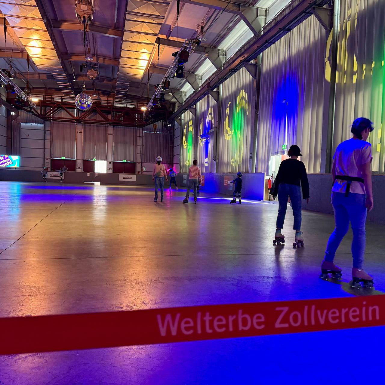 Viele Familien sind nach Essen gekommen, nur um auf die Rollschuhbahn zu gehen. Unser Radio Essen-Stadtreporter hat am ersten Wochenende vor allem junge Familien aus ganz NRW auf der Bahn getroffen. Die meisten verbinden das mit einem Spaziergang über das Gelände der Zeche Zollverein. Die Rollschuhbahn ist bis zum 27. April geöffnet. Tagsüber kommen meist die Familien, abends Jugendliche, weil dann Rollschuhdisco ist. Wer keine eigenen Rollschuhe hat, kann sich an der Halle ein Paar ausleihen. Hier sind alle Preise und Öffnungszeiten: