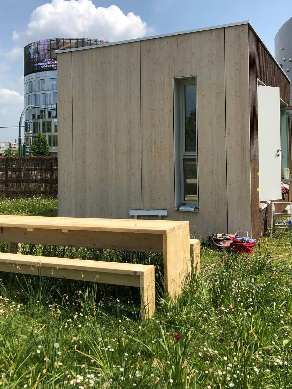 Das Museum Folkwang hat im Jubiläumsjahr eine große Kunstaktion mit zahlreichen Projekten und Ausstellungen in der nördlichen Innenstadt geplant. Dazu gehört auch das Eco-Village auf dem Kreisverkehr am Berliner Platz. Dort wird ein rund 20 Quadratmeter großes Haus aufgestellt. Das Haus besteht komplett aus kreislauffähigen Materialien. Wenn es nicht mehr als Haus genutzt wird, kann alles daraus wiederverwendet werden. Auf dem Kreisverkehr werden auch Hochbeete gebaut und dort kann jeder mit gärtnern, der möchte.