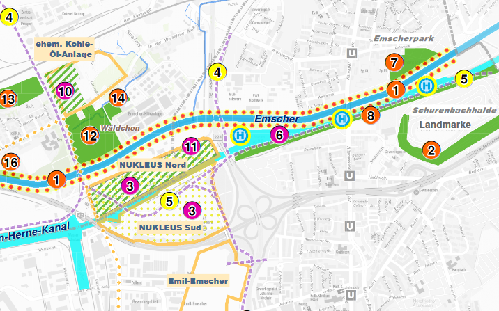 Die Projekte ziehen sich dann weiter bis nach Bottrop hinein. Highlights sind unter anderem "Schwimmende Gärten" auf dem Kanal und ein Spielstrand an der dann sauberen Emscher. Dass all diese Projekte umgesetzt werden können, ist noch nicht sicher, aber zumindest sehr wahrscheinlich.