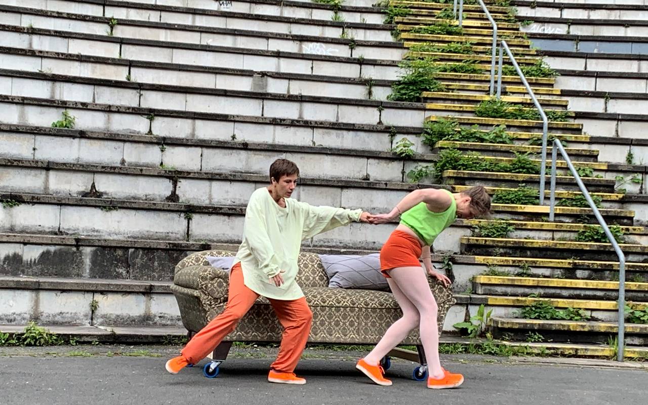 Das erste Stück in der Dubois-Arena ist "PhantaNase", ein getanztes Stück für kleinere Kinder und Erwachsene. Rubi hat nicht genug Platz auf dem Sofa. Wenn Papa, Mama und sie zu dritt darauf sitzen sollen dann hat sie dazu keine Lust und kriecht lieber unter das Sofa. Da trifft sie ein ulkiges Wesen und freundet sich mit ihm an. Rubi und "PhantaNase" mischen die Eltern ordentlich auf und haben mächtig Spaß. Eintritt: 5 Euro für Kinder und 7,50 Euro für Erwachsene.