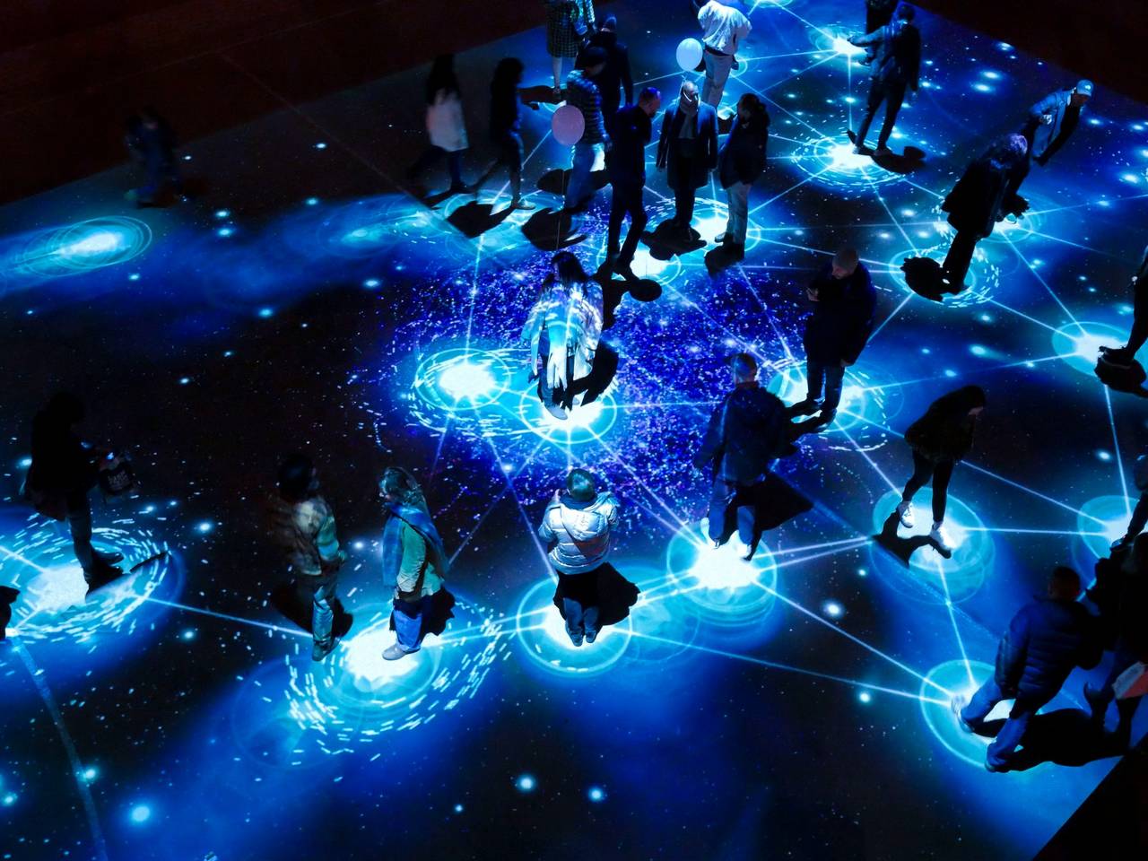 Am Burgplatz konntet Ihr ebenfalls mit dem Kunstwerk interagieren. Auf einer rund 300 Quadratmeter großen Fläche seid Ihr Teil der Projektion geworden. Optisch wurden die Besucherinnen und Besucher miteinander verbunden und je nach Euren Bewegungen veränderte sich das gesamte Erscheinungsbild der Projektion.