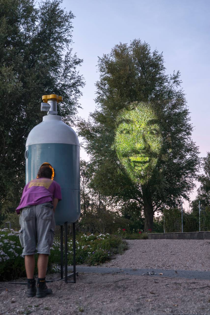 Neben dem Klassiker "Baum der Wünsche", der dieses Jahr an der Kettwiger Straße/Ecke Zwölfling gestanden hat, gab es auch eine andere Installation mit einem Baum. Das Besondere: Der Baum bekam Euer Gesicht. Weil wir die Bäume zum Atmen brauchen und sie uns wertvollen Sauerstoff schaffen, konntet Ihr am Hirschlandplatz Euren Kopf in einen großen Sauerstofftank halten. Euer Gesicht wurde dann auf die Baumkrone projiziert und je nach Eurem Gesichtsausdruck sah der Baum dann eben auch aus.