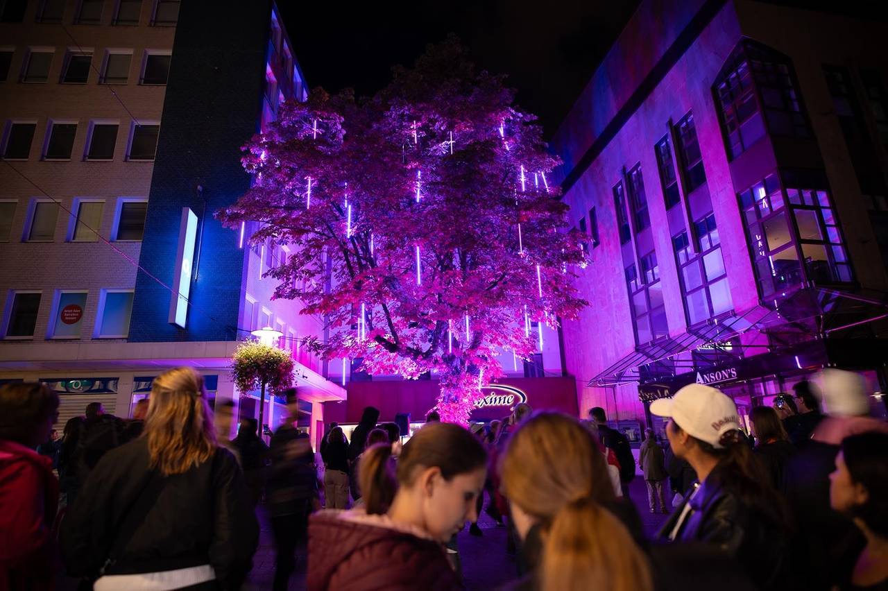 Das Essen Light Festival feiert dieses Jahr Geburtstag. Zum zehnten Mal leuchten verschiedene Lichtinstallationen in der ganzen Innenstadt. Zum Jubiläum hat sich die Essen Marketing Gesellschaft (EMG) ein paar besondere Highlights überlegt. Beispielsweise sind die drei beliebtesten Lichtkunstwerke der letzten zehn Jahre dieses Jahr wieder zu sehen. Dafür konntet Ihr im Februar mit abstimmen.