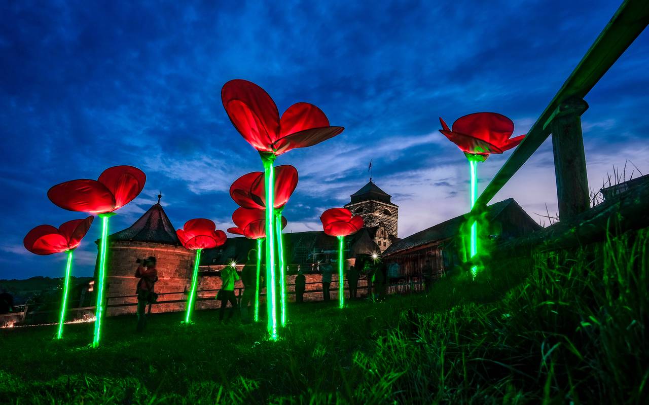 Los gehts am Willy-Brandt-Platz mit der Lichtinstallation "House of Cards". Das ist ein riesiges, leuchtendes Kartenhaus auf einer Grundfläche von 70 Quadratmetern. Die einzelnen Karten leuchten da passend zu Musik.