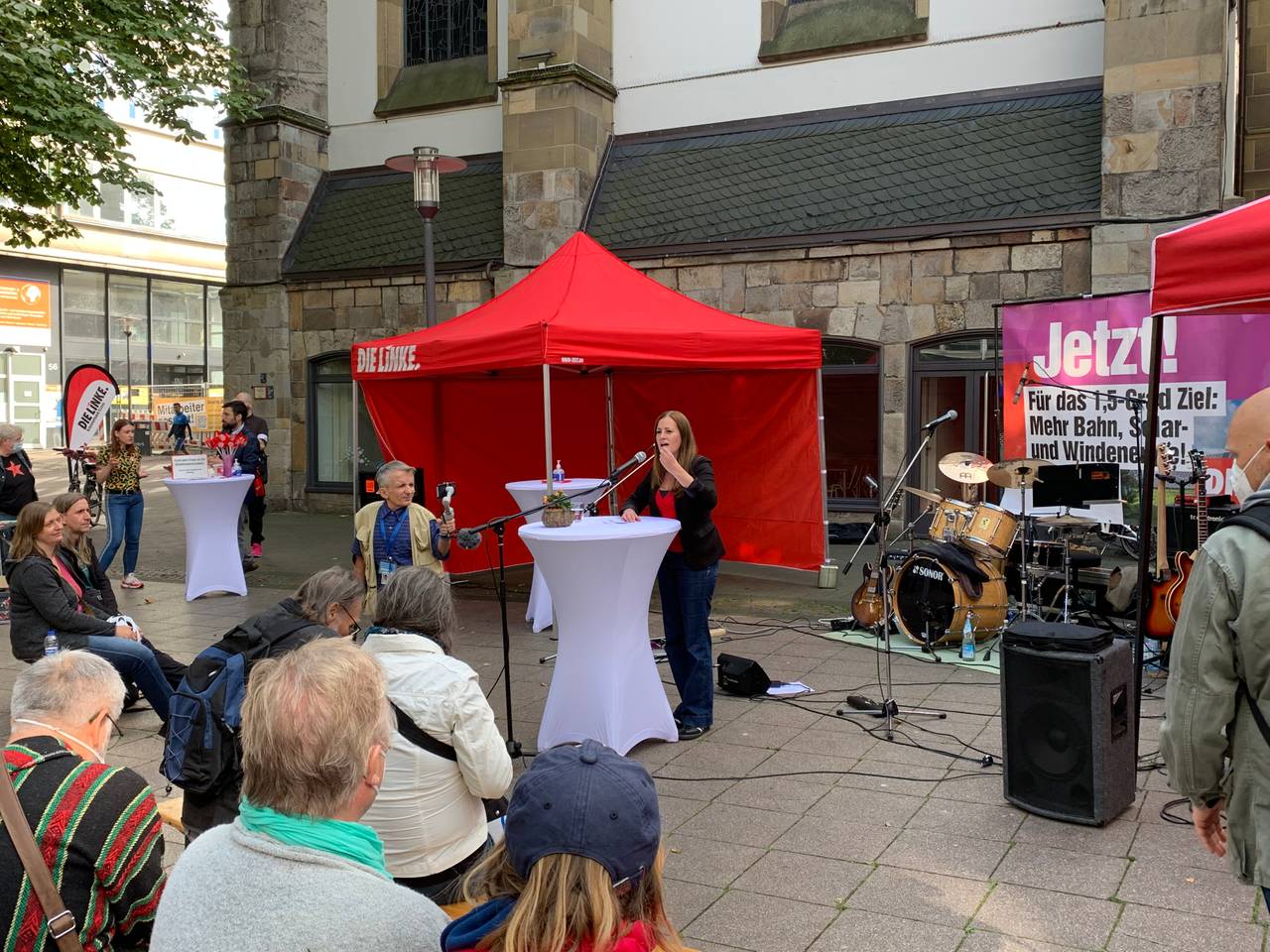 Kurz vor der Bundestagswahl kam die Linke-Spitzenkandidatin Janine Wissler nach Essen. Am Samstag-Mittag war sie am Flachsmarkt in der Innenstadt. Die Linke hat dort ein zweistündiges Programm mit Live-Musik, Reden von den Essener Direktkandidat:innen sowie von Janine Wissler gemacht. Eine halbe Stunde hat sie emotional vor rund 120 Menschen gesprochen. Eine Bühne gab es nicht, sondern einen Stehtisch mit Mikro. In ihrer Rede hat Janine Wissler die Standpunkte ihrer Partei klargemacht. Lauten Applaus gab es vor allem, als die Afghanistan-Krise angesprochen wurde, weil die Linke seit Jahren gegen einen Einsatz in Afghanistan war. In ihrer Rede ging es grundsätzlich wenig um lokale Themen.