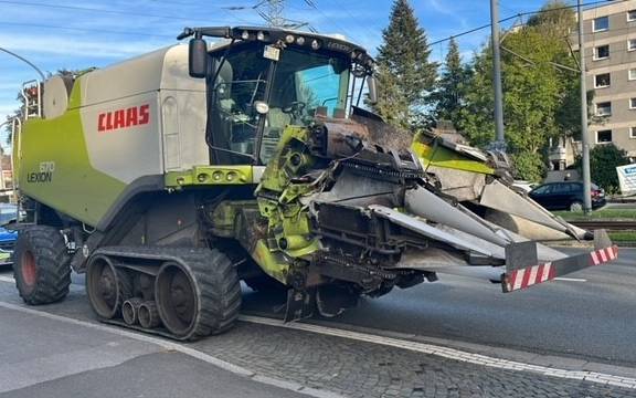 Die Essener Polizei hat am Montagabend einen Mann gestoppt, der mit einem großen Mähdrescher durch den Feierabendverkehr gefahren ist. Der Mähdrescher hatte einen Kettenantrieb und war mehr als 3,50 Meter breit, berichtet die Polizei. Er kam aus Bottrop und wollte über Essen nach Mülheim fahren. Die Polizei stoppte ihn in Schönebeck, wo er auf zwei Spuren der Aktienstraße unterwegs war. Der Mann hatte für die Fahrt keine Genehmigung und die Zulassung für den Mähdrescher war schon seit mehreren Jahren abgelaufen. Als die Polizei ihn darauf hinwies, war der Mann offenbar sehr verwundert: "Von sowas habe ich noch nicht gehört."