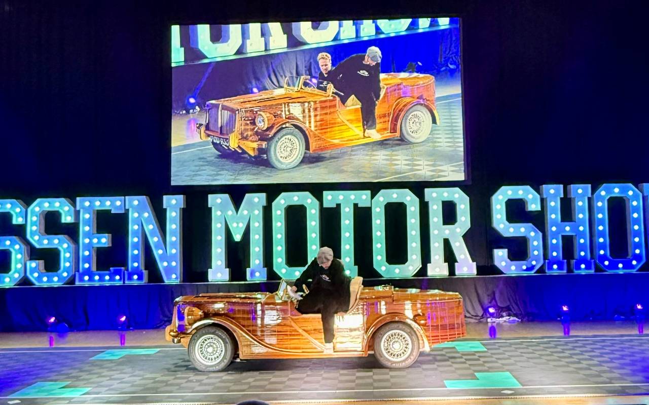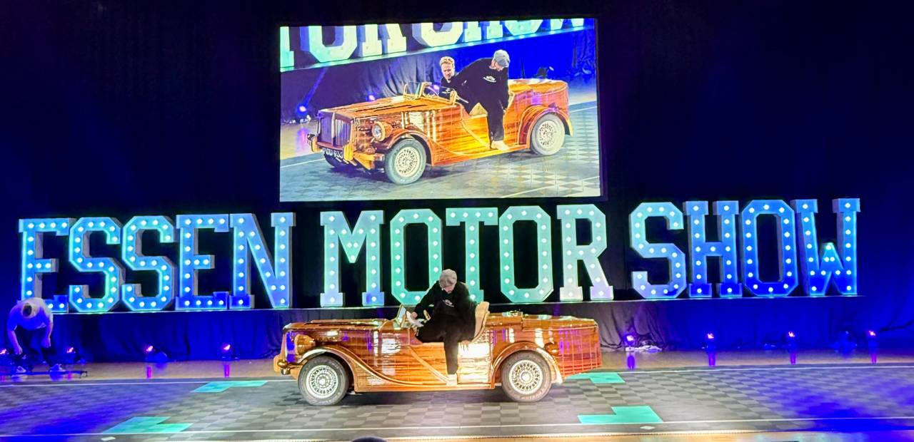 In der Messe Essen ist auch ein Holz-Auto zu sehen