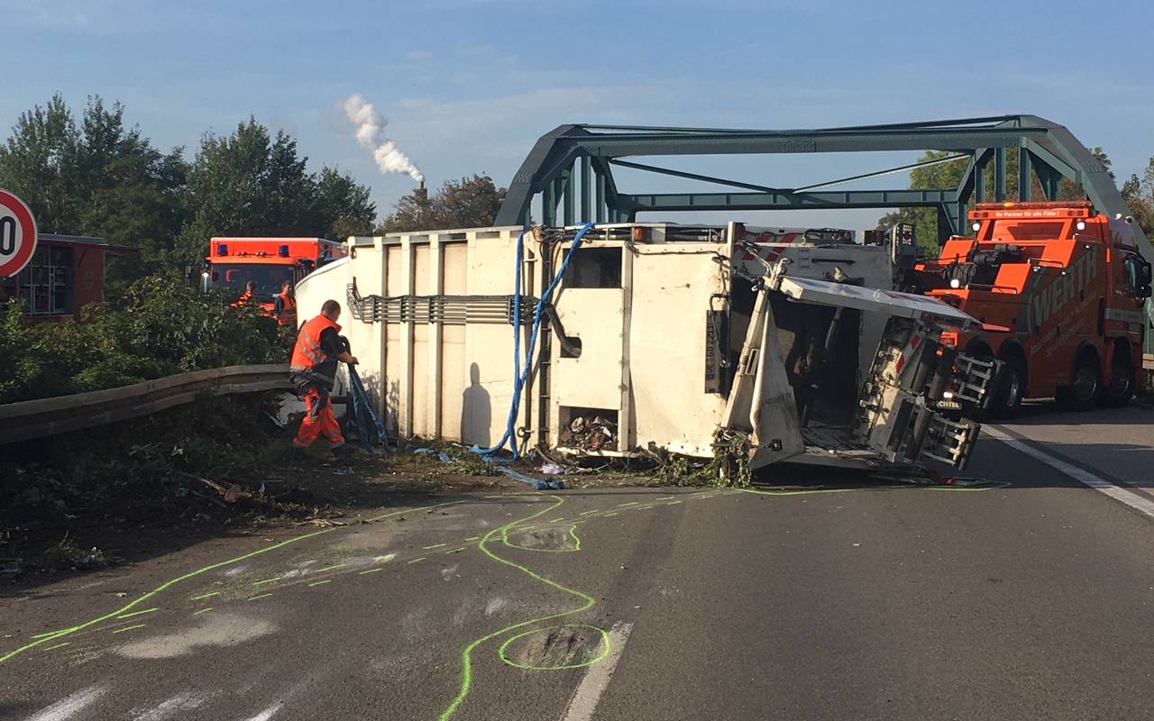 Müllwagen kippt um: Fotos vom Unfallort