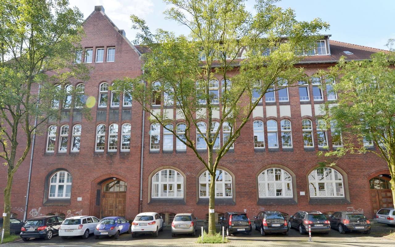 Die Käthe-Kollwitz-Grundschule in Essen-Rüttenscheid bekommt einen Neubau. Dafür müssen das alte Toillettengebäude und das Hausmeistergebäude abgerissen werden.