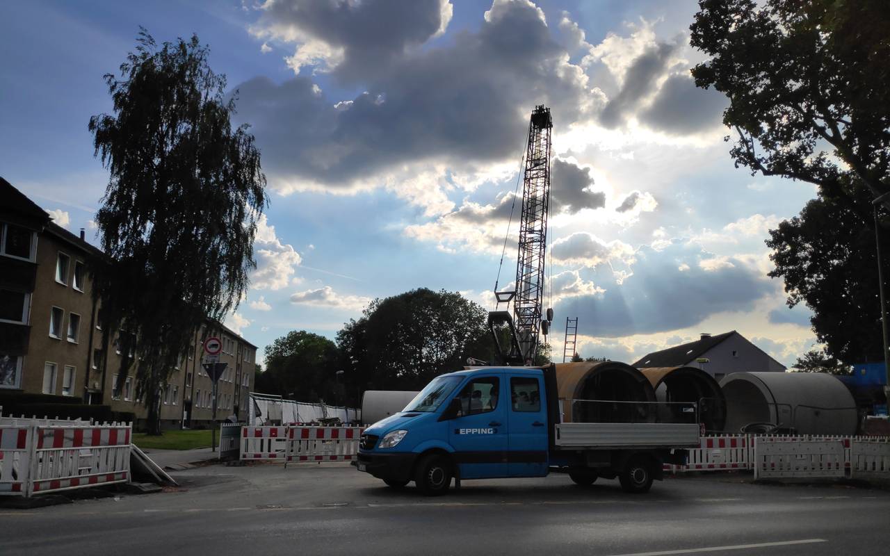 Kanalbauarbeiten in Essen mit riesigem Gerät
