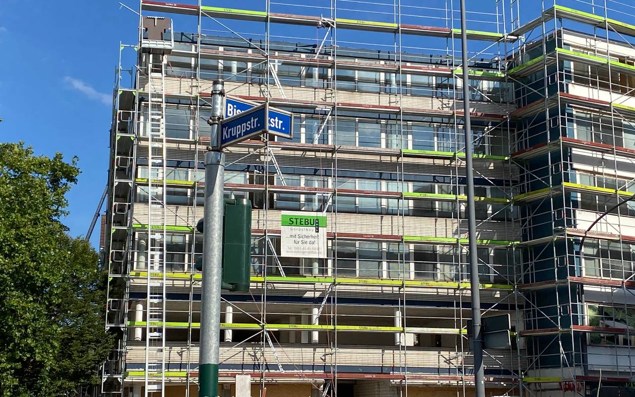 Wer aus Richtung Süden über die Bismarckstraße in die Innenstadt von Essen fährt, stand schon öfter neben dem Eckhaus an der Ampel und hat sich gewundert. Jahrelang stand das gesamte Haus leer. Nur ein paar Schilder luden regelmäßig zur Besichtigung ein. Jetzt kommt aber wieder Leben in das Haus. Seit einigen Tagen steht ein Gerüst rund um das Haus und mehrere Bauarbeiter gehen ein und aus. Die Stadt hat auf Radio Essen-Nachfrage bestätigt, dass sie eine Baugenehmigung erteilt hat. Jetzt wird das gesamte Haus renoviert und umgebaut. Später kommen Büros in die oberen Etagen. Im Erdgeschoss zieht ein Cateringunternehmen ein. Früher war an der Stelle ein Geschäft unter anderem für Antiquitäten und Möbel. Das hatte aber schon lange geschlossen.