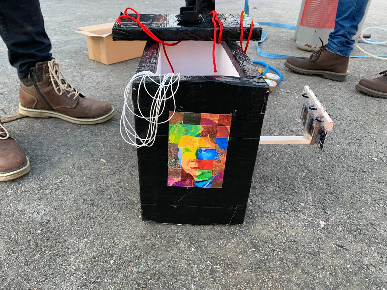 Die kleine Sonde heißt Gertrud (angelehnt an die Gertrud-Bäumer-Realschule in Altenessen) und ist eine etwa ein Kilo schwere Styroporkiste. An einem drei Meter großen Wetterballon schwebte sie heute Vormittag in den Himmel, in die Stratosphäre auf 40.000 Meter. Von dort sieht man die Erde als blaue Kugel. An der Kiste sind Kameras befestigt, die Fotos von der Erde machen sollen. Dann platzt der Ballon und per Fallschirm landet die Sonde mit den Kameras wieder auf der Erde. Wo genau, weiß aber niemand. Daher ist ein GPS-Sender an der Styroporkiste befestigt. Nach derzeitigen Berechnungen sollte die Kiste in der Nähe von Hannover auf die Erde treffen. Ein Bergungsteam fährt dann los und sammelt die Sonde ein. Sobald die Bilder vorliegen, zeigen wir sie natürlich hier auf der Radio Essen Webseite.