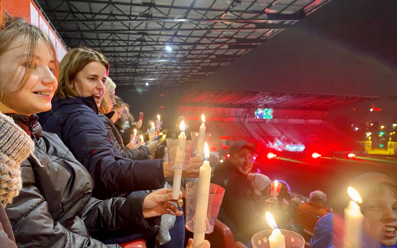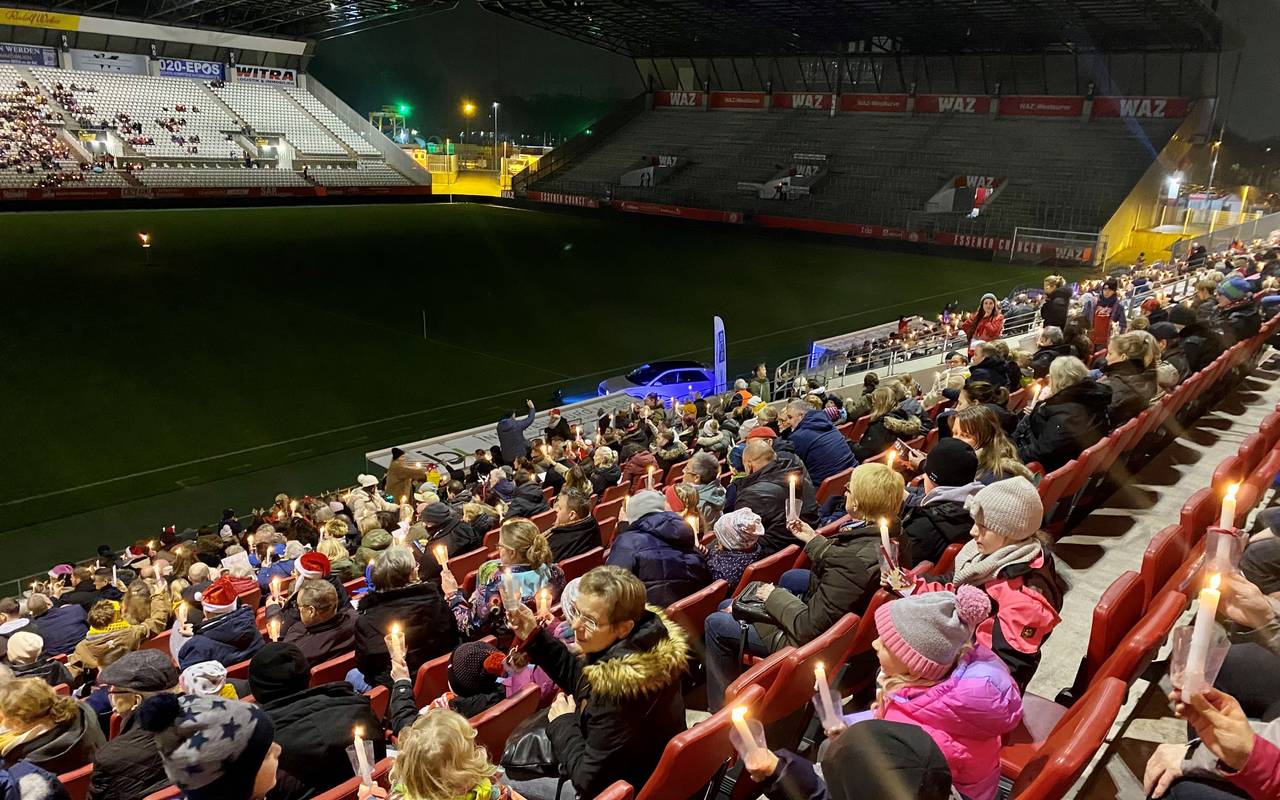 Rund 3.000 Menschen haben kurz vor Weihnachten im Stadion an der Hafenstraße in Essen Weihnachtslieder zusammen gesungen. Dazu gab es eine schöne Lichteratmosphäre.