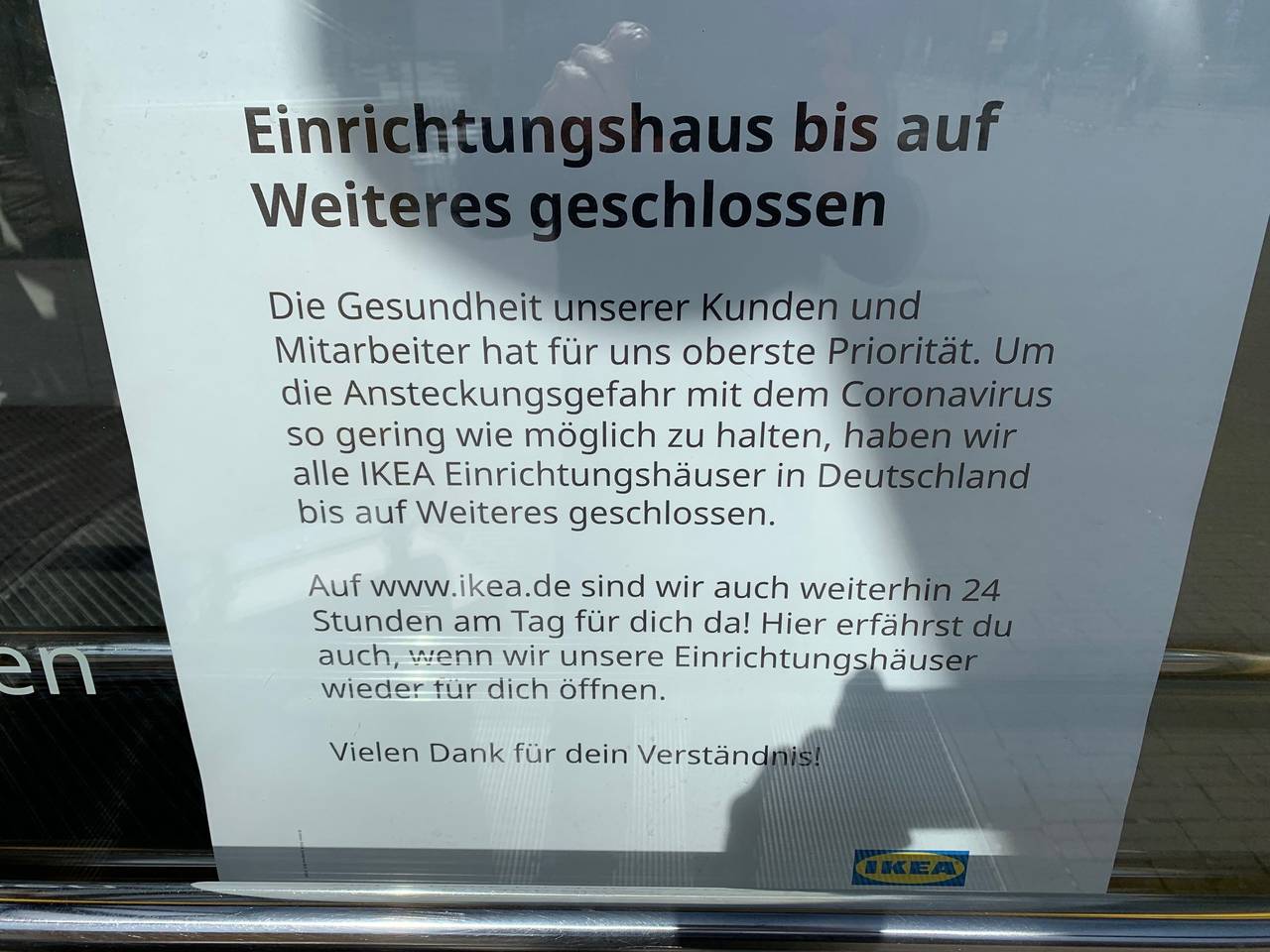 Auch Möbelhäuser gehören zu den Einrichtungen, die nach dem Erlass des Landes NRW und der Weisung der Stadt Essen nur noch eingeschränkten Zutritt zulassen dürfen. IKEA in Essen hat sich jetzt aber schon entschlossen, komplett zu schließen. Auf einem Schild am Eingang heißt es: Die Gesundheit der Mitarbeiter und Kunden habe oberste Priorität. Deshalb sind alle IKEA in Deutschland bis auf Weiteres geschlossen.