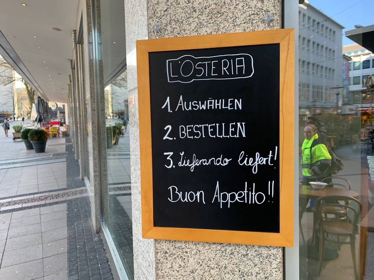 Bei manchen Restaurants hat sich dafür jetzt ein ganz anderer Trubel eingestellt. Die Restaurants, die Essen liefern, werden jetzt viel mehr von Lieferdiensten, wie Lieferando angefahren. Für unseren Stadtreporter sah das heute teilweise aus, wie in einer Ameisenkolonie. Im Minutentakt sind die Lieferanten bei Restaurants, wie dem Bürgerladen Hans im Glück am Kennedyplatz raus und rein spaziert.