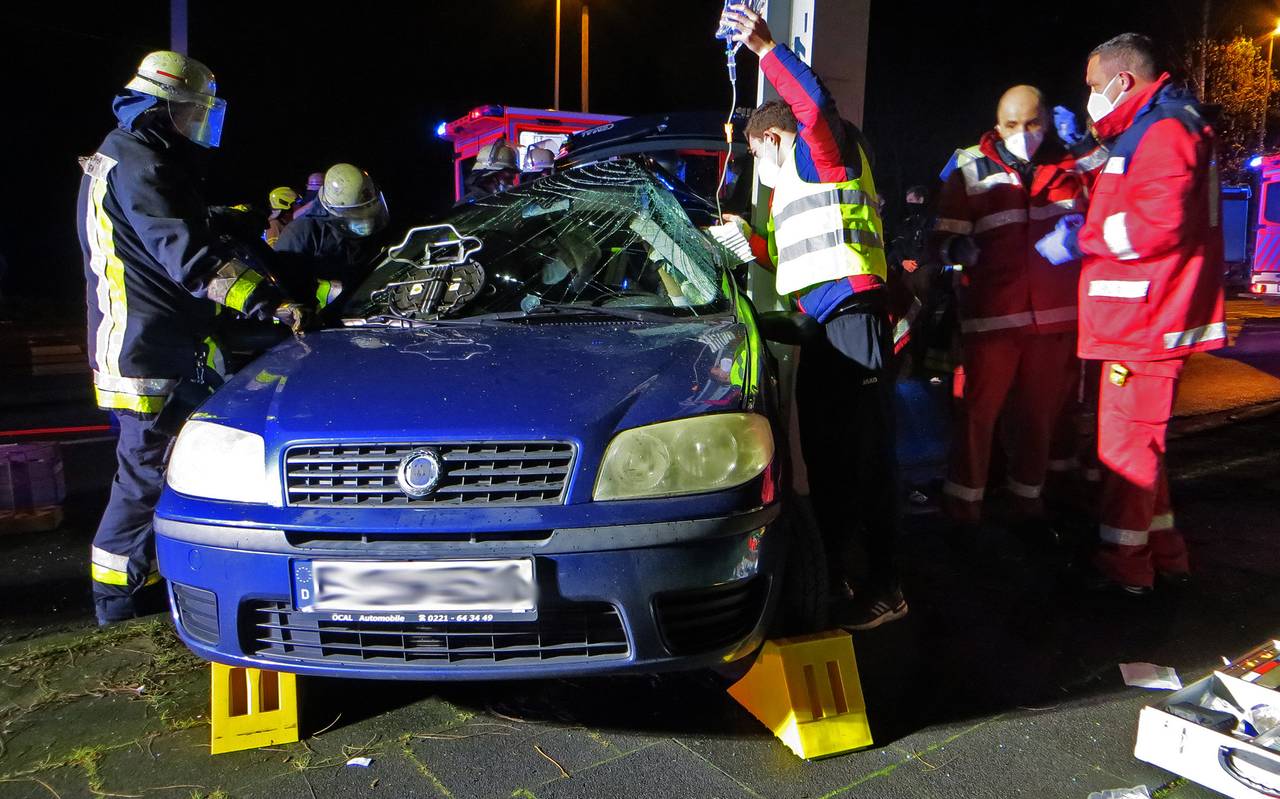 Warum das Fahrzeug von der Fahrbahn abkam, ist aktuell noch unklar. Durch die Wucht des Aufpralles war der Fiat so verzogen, dass an ein Öffnen irgendeiner Tür nicht zu denken war. Nachdem der Notarzt den Patienten noch im Fahrzeug erstuntersucht und versorgt hatte, lief die eigentliche technische Rettung an. Mit einer hydraulischen Schere durchtrennten die Retter alle Holme auf der Fahrerseite des Fahrzeuges, um das Dach über die Längsachse zur Beifahrerseite wegzuklappen. Zuvor wurde die zerstörte Windschutzscheibe mit einer speziellen Säge entfernt. Dann konnte der Patient auf einem Spineboard (optisch ähnlich einem kleinen Surfbrett) achsengerecht und schonend aus dem Wrack gehoben werden. Nach notärztlicher Weiterversorgung erfolgte der Transport in eine Klinik.