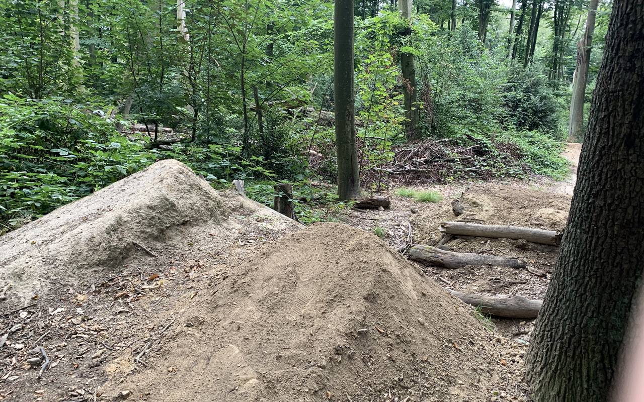 Spätestens seitdem es vor mehreren Wochen einen Unfall zwischen einem Mountainbiker und einer Spaziergängerin im Schellenberger Wald gab, ist die Diskussion rund um die Mountainbikestrecke wieder in vollem Gange. "Wir verstehen nicht, warum wir für das falsche Verhalten eines Einzelnen verantwortlich gemacht werden", erklärt sich Lasse, einer der Jugendlichen, die sich mehrmals in der Woche zum biken treffen. Vor etwa zwei Wochen wurden von Grün und Gruga zum zweiten Mal einzelne Elemente, wie Rampen und Brücken zerstört und entsorgt.