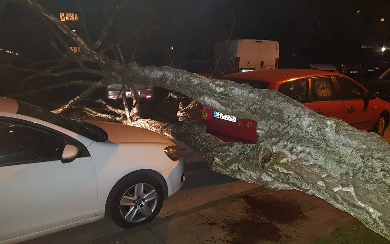 An der Dinnendahlstraße in Bergerhausen hat Radio Essen-Hörerin Brigitte einen Baum entdeckt, der quer über die Straße gefallen ist. Er ist komplett abgebrochen und aus dem Boden gehoben. Ebenfalls in Bergerhausen ist auch schon am Nachmittag ein Baum auf ein Auto gefallen. Es sei ein kleiner Baum, sagt die Feuerwehr. Es ist keiner verletzt worden. Aber der Wind wird stärker und weht schon einige lose Äste umher. Auch in Bochold hat der Wind schon einige Dachziegeln von Häusern geweht. Das seien aber noch harmlose Fälle. Gerade heute Nacht wird der richtige Sturm erwartet. Deshalb sind Hunderte Einsatzkräfte der Feuerwehr Essen, der Freiwilligen Feuerwehr, der Malteser, des DRK und der DLRG auf Bereitschaft und können sofort ausrücken, wenn etwas passiert.