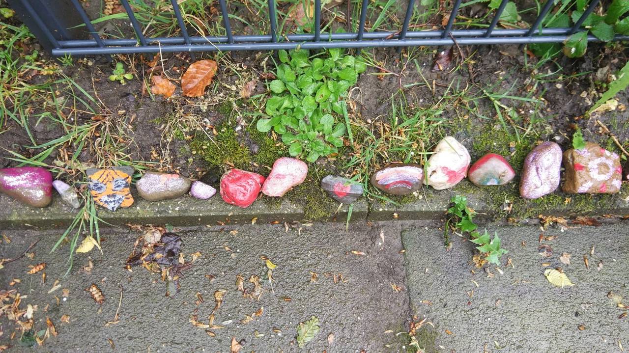 30-40 bemalte Steine lagen noch bis vor Kurzem direkt vor dem Eingang der Großtagespflege "Flohkiste" an einem Zaun. Darüber hängt ein Schild, das jeden, der mag, dazu auffordert, auch einen Stein zu bemalen und die Steinschlange wachsen zu lassen. Von einem auf den anderen Tag waren plötzlich alle Steine verschwunden. Das muss nachts passiert sein, heißt es von der Kindertagespflege. Abends hätten Spaziergänger die Steine noch gesehen. Wer sie geklaut hat, ist unklar. Derjenige muss aber einen großen Beutel mitgehabt haben, denn alle Steine hätte er nicht ohne Tasche wegtragen können.