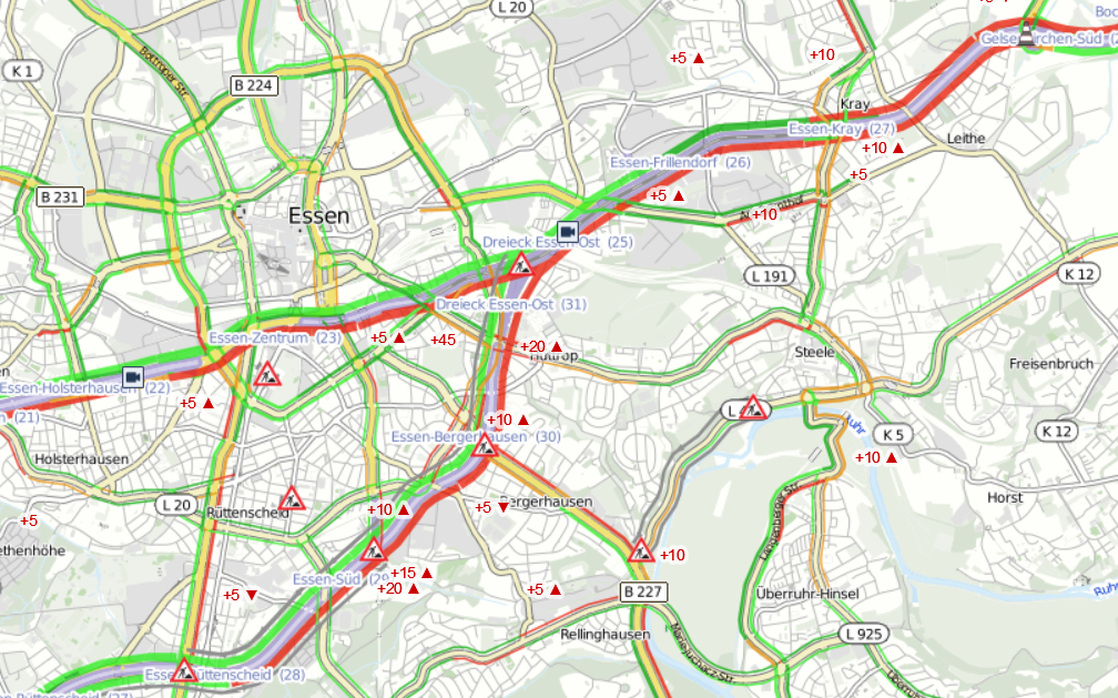 Der Rückstau im Berufsverkehr ist immens gewesen: Er reichte zeitweise zurück bis nach Mülheim, Autofahrer mussten eine dreiviertel Stunde mehr einplanen. Auch die A52 war sehr voll. Im Essener Stadtverkehr sind viele Straßen verstopft gewesen, zum Beispiel die Ruhrallee.