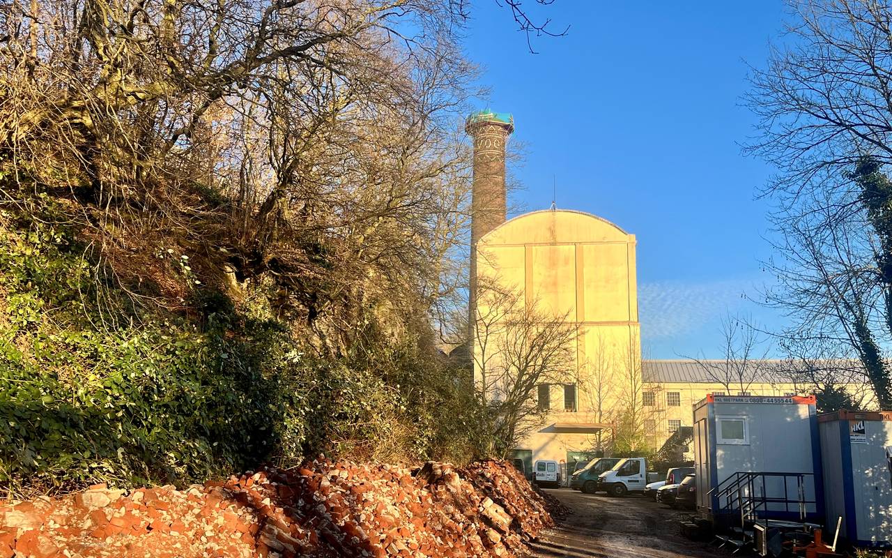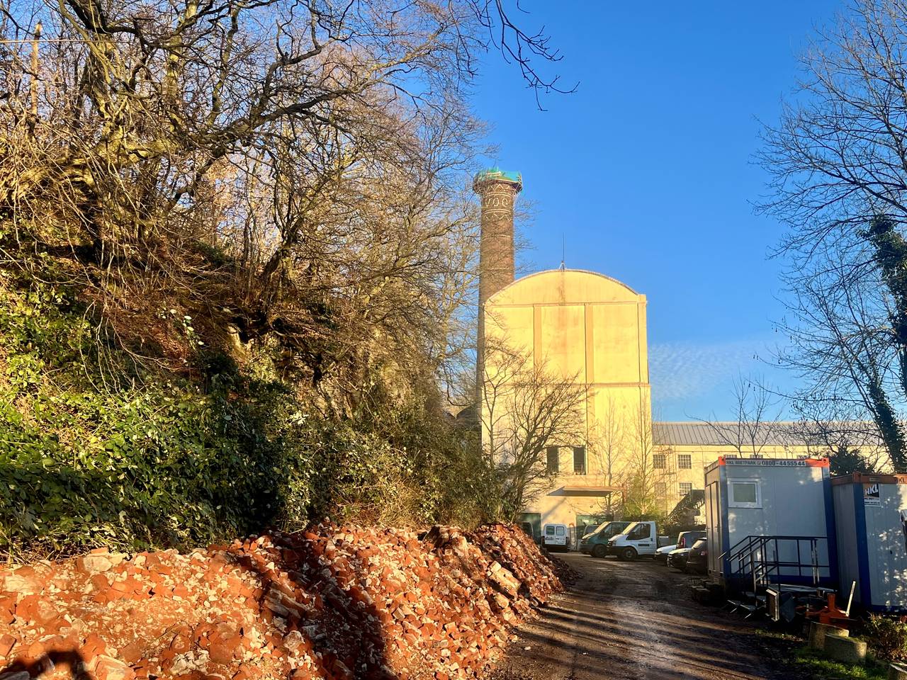 Einer der bekanntesten Schornsteine in Essen stand über 100 Jahre an der Ruhr. Die Horster Mühle wurde 1910 zum Wasserkraftwerk umgebaut. Der Unternehmer Wilhelm Vogelsang hatte damals die Mühle gekauft und seinen Namen für alle gut sichtbar in den Kamin seiner Fabrik schreiben lassen. Der Schriftzug war bis Mitte Januar 2025 noch zu sehen. Der Schornstein über dem weißen Schriftzug war schon abgetragen. Bald ist auch der Rest des Denkmals verschwunden. Für immer. Ein externer Gutachter hatte den Kamin auf Standfestigkeit geprüft und als gefährlich eingestuft. Die Denkmalbehörde und die Bauaufsicht der Stadt Essen waren sich einig, dass der 74 Meter hohe Koloss abgerissen werden muss.